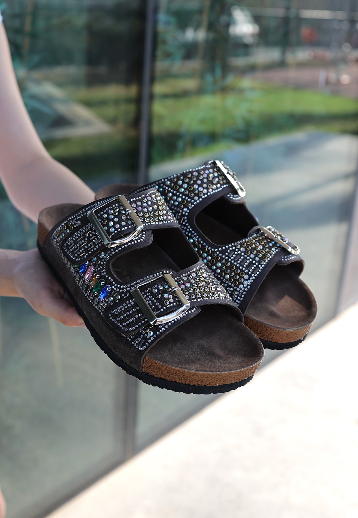 • Edaj Kahverengi Nubuk Boncuk İşlemeli Terlik
