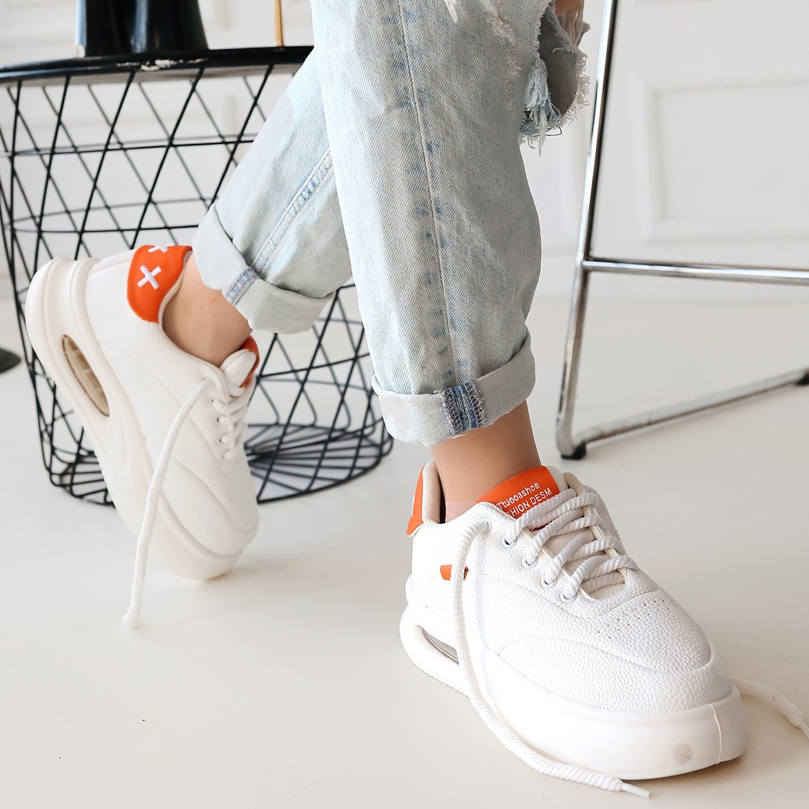 Chris Beyaz Cilt Turuncu Detaylı Bağcıklı Spor Ayakkabı
