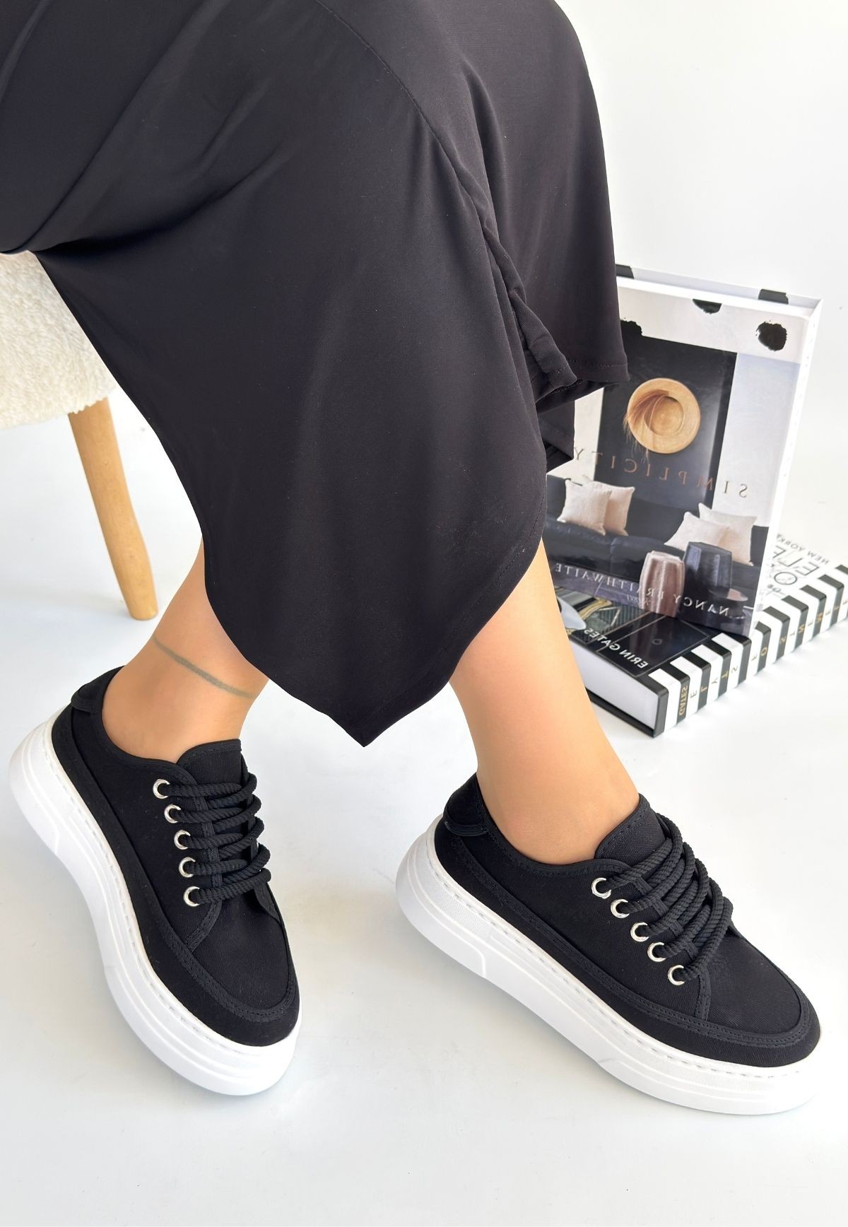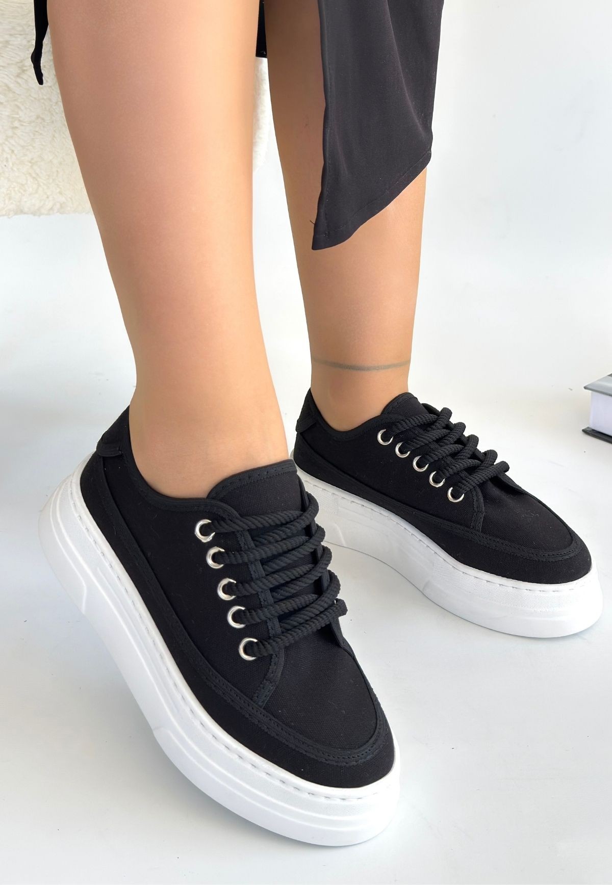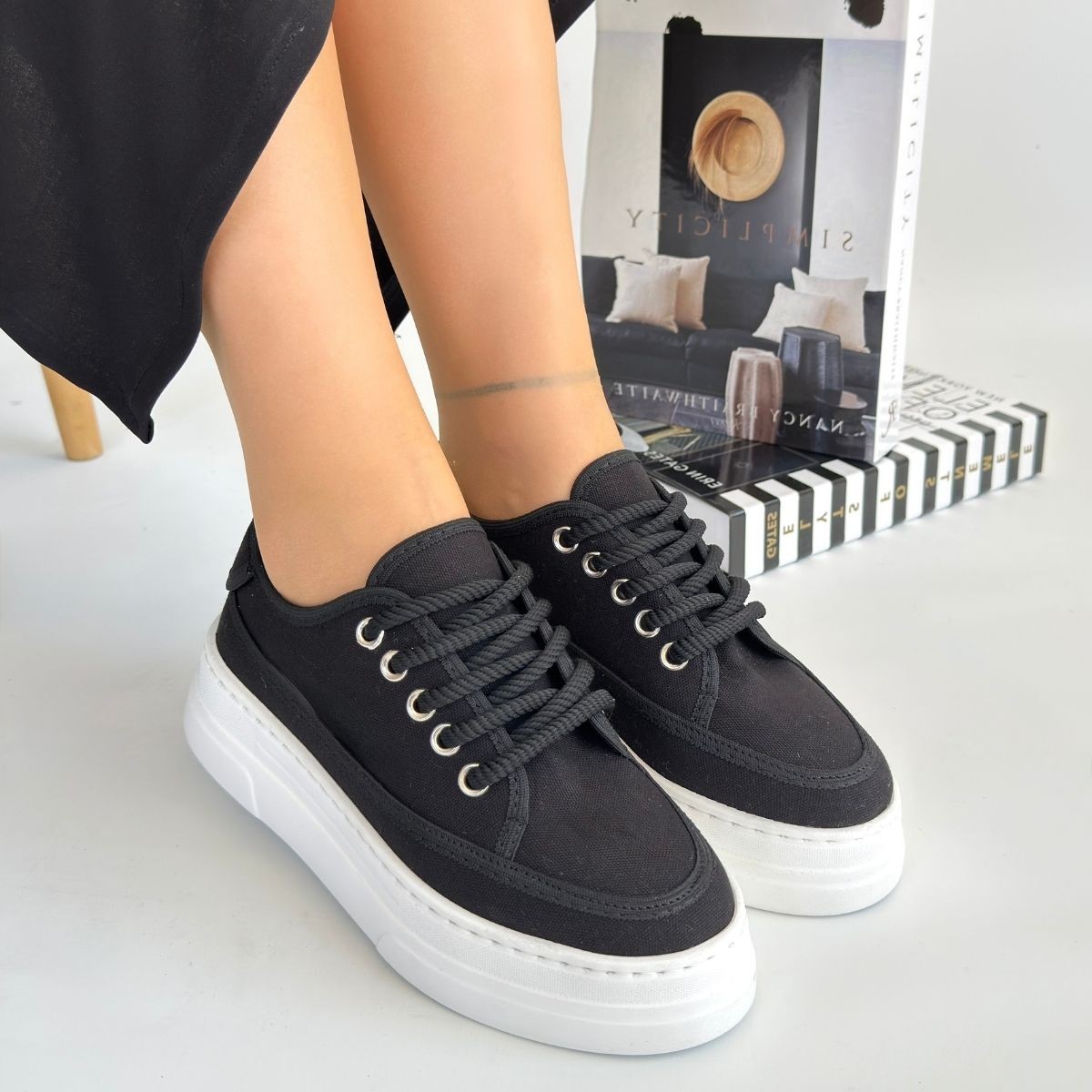 • Carin Siyah Keten Bağcıklı Spor Ayakkabı