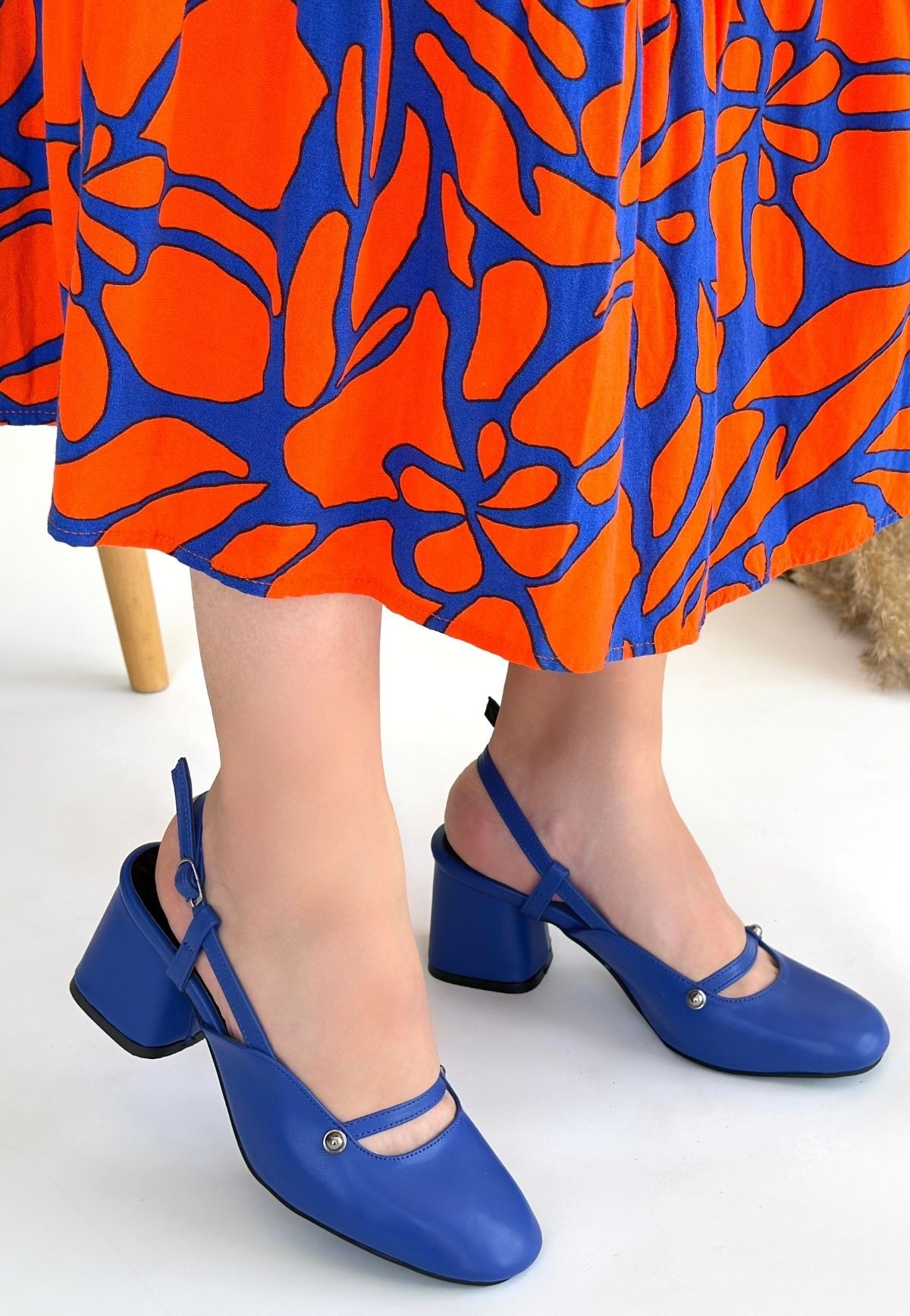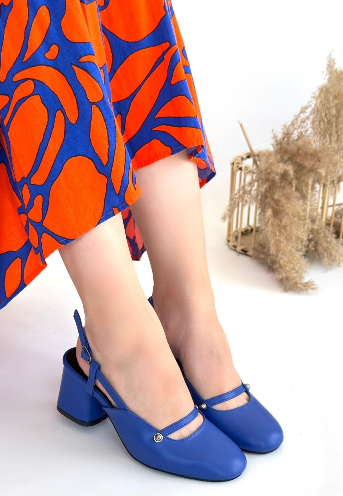 Jecci Mavi Cilt Topuklu Ayakkabı