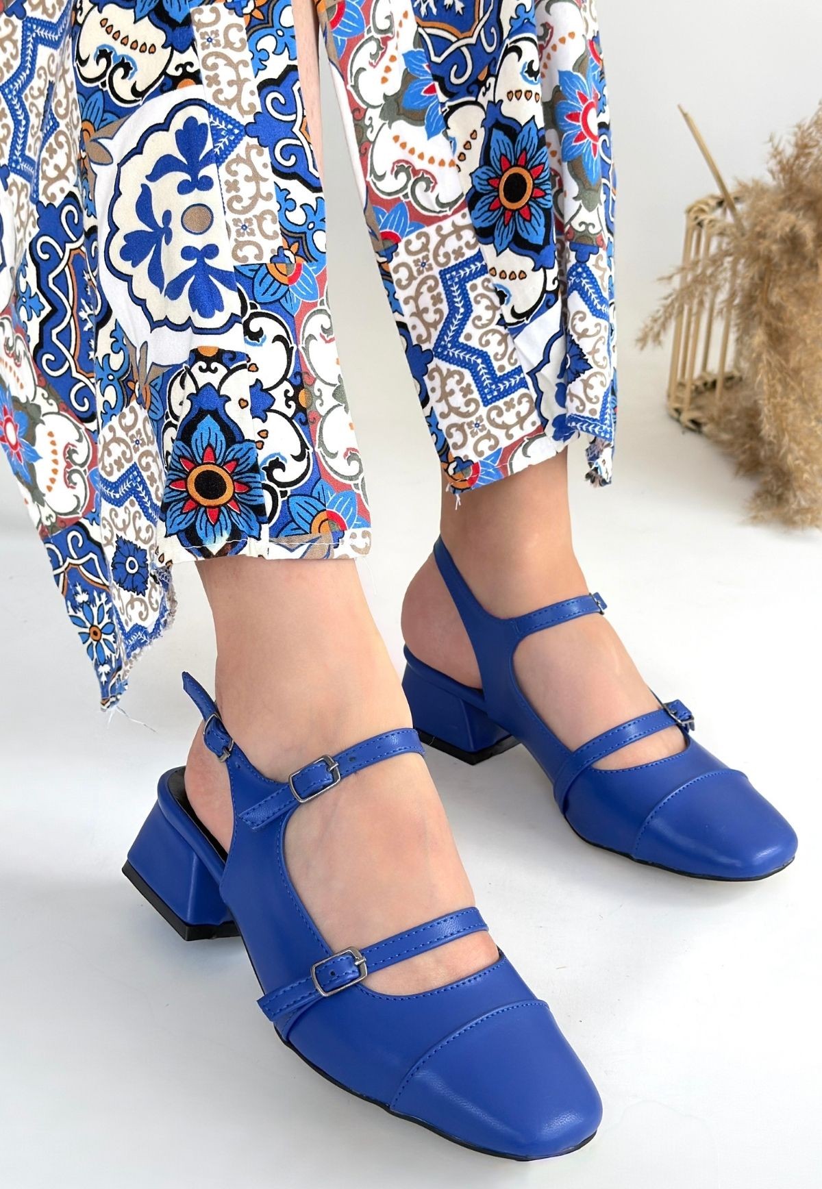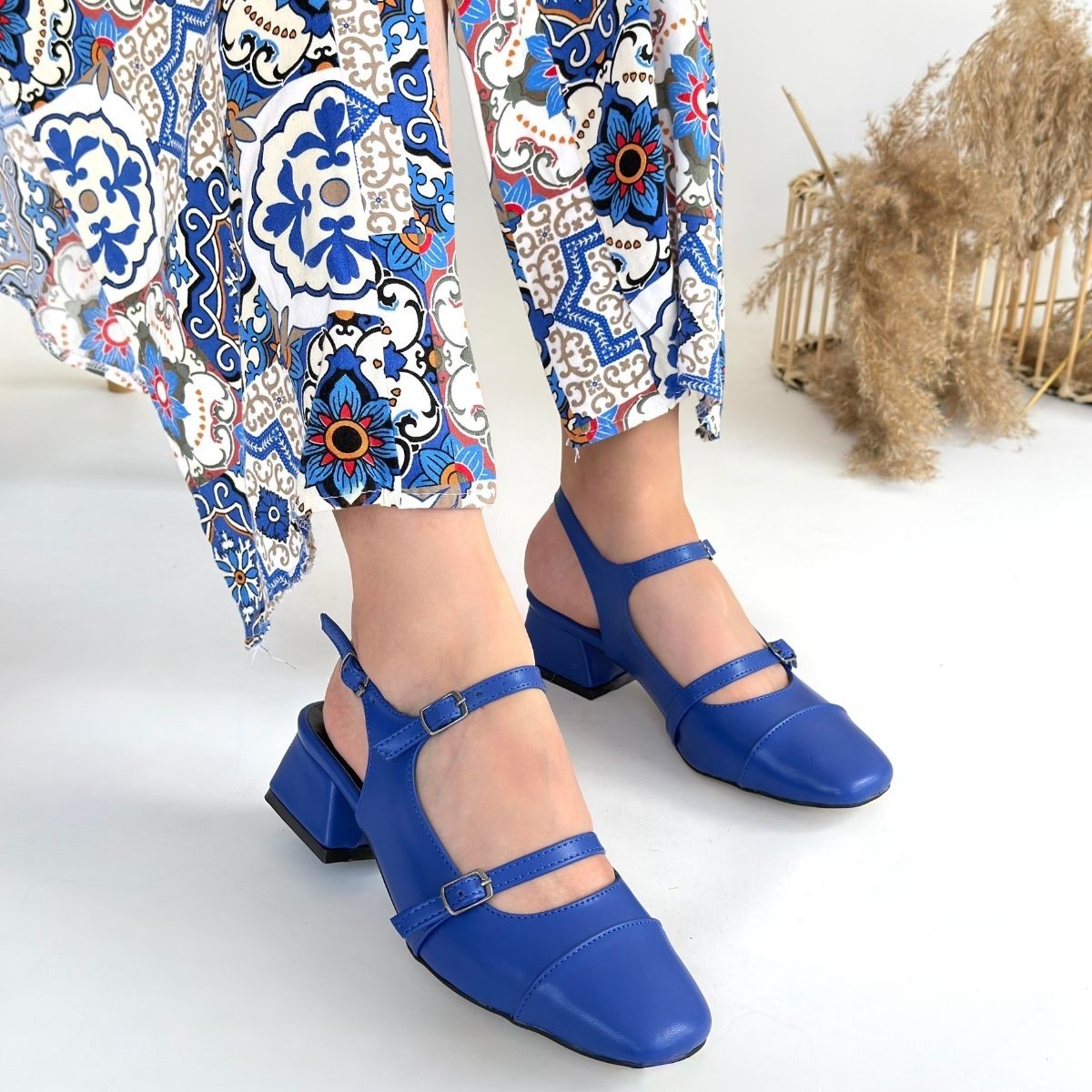 • Doran Mavi Cilt Topuklu Ayakkabı