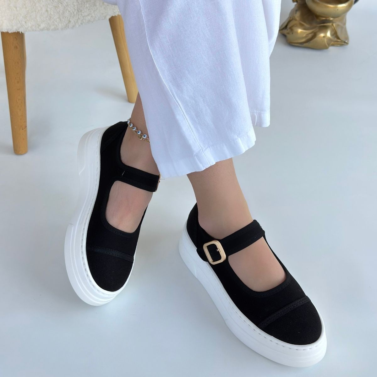 • Lunni Siyah Keten Spor Ayakkabı