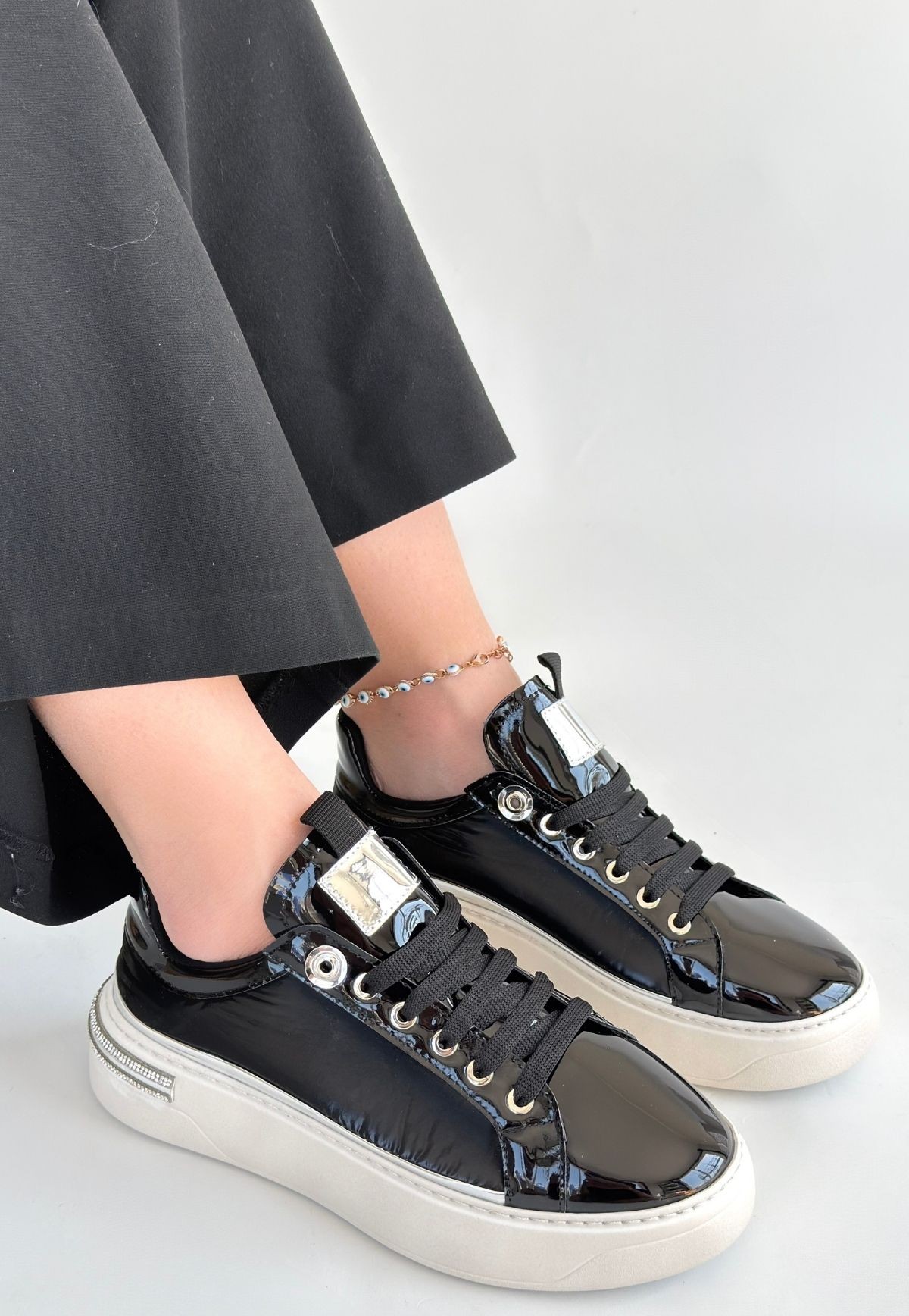 • Hley Siyah Rugan Paraşüt Detaylı Bağcıklı Spor Ayakkabı