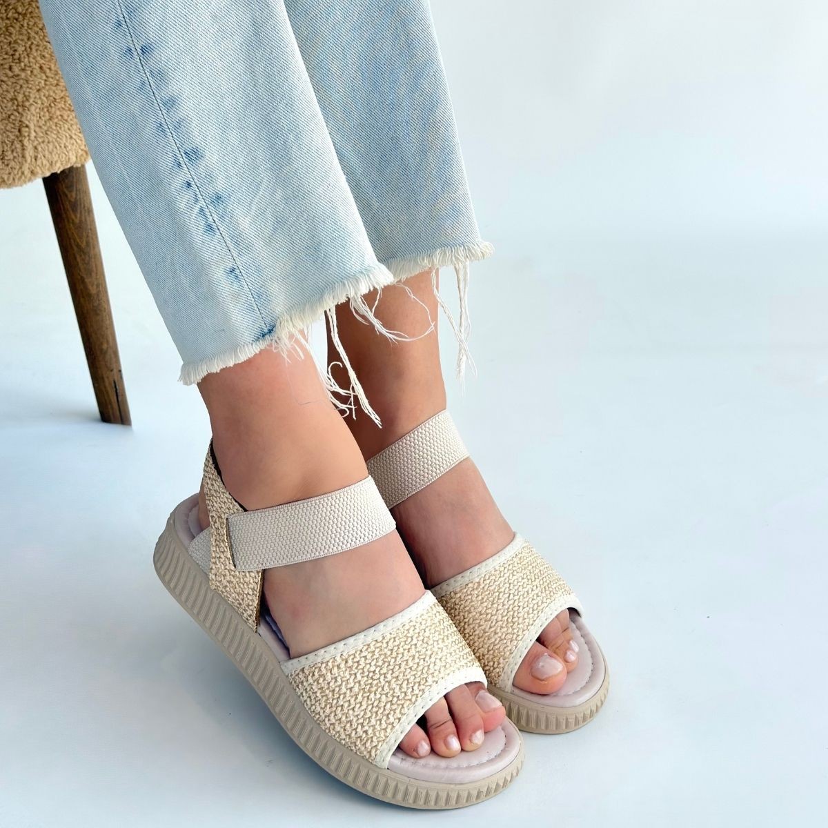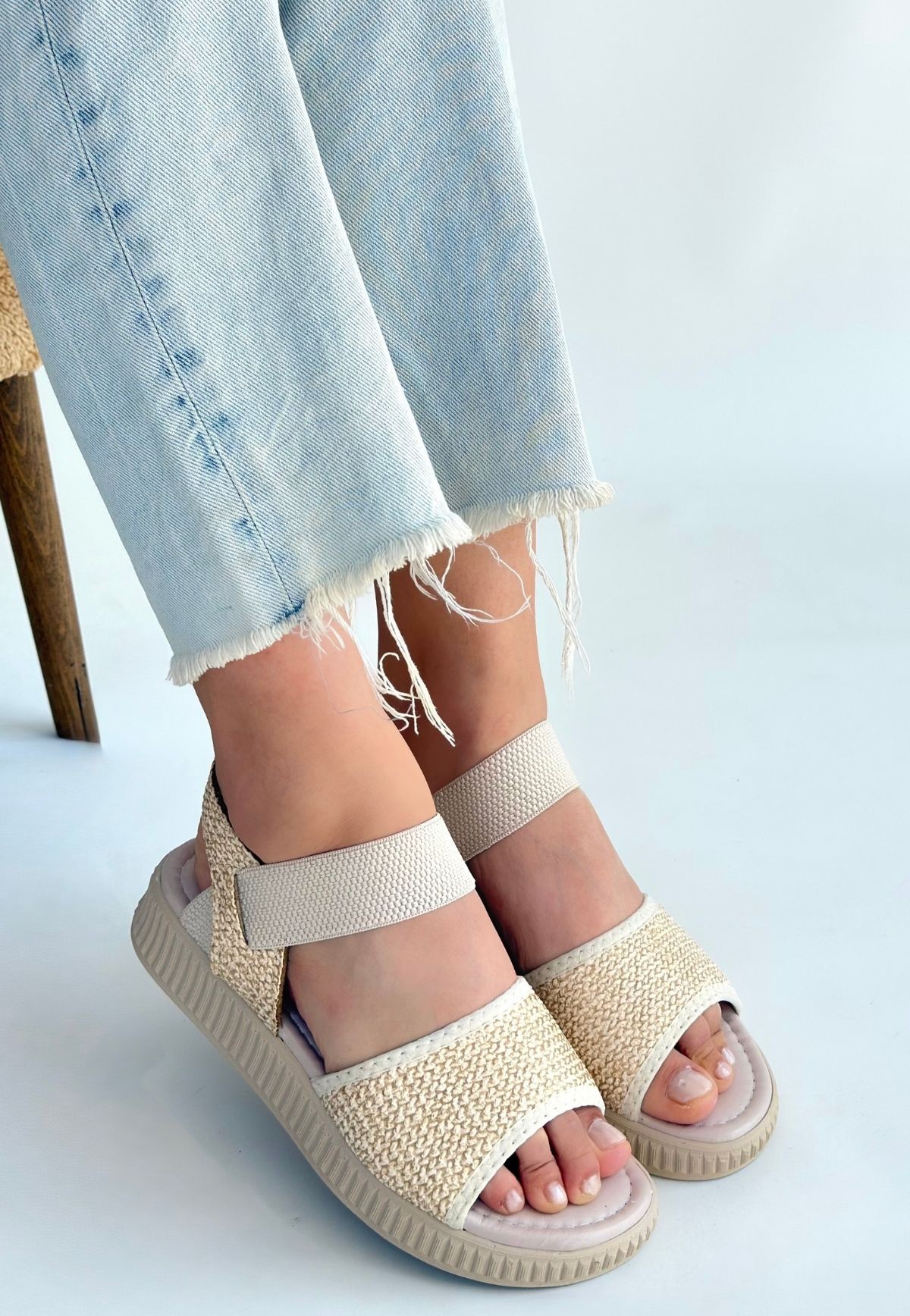 • Jake Bej Hasır Cilt Sandalet