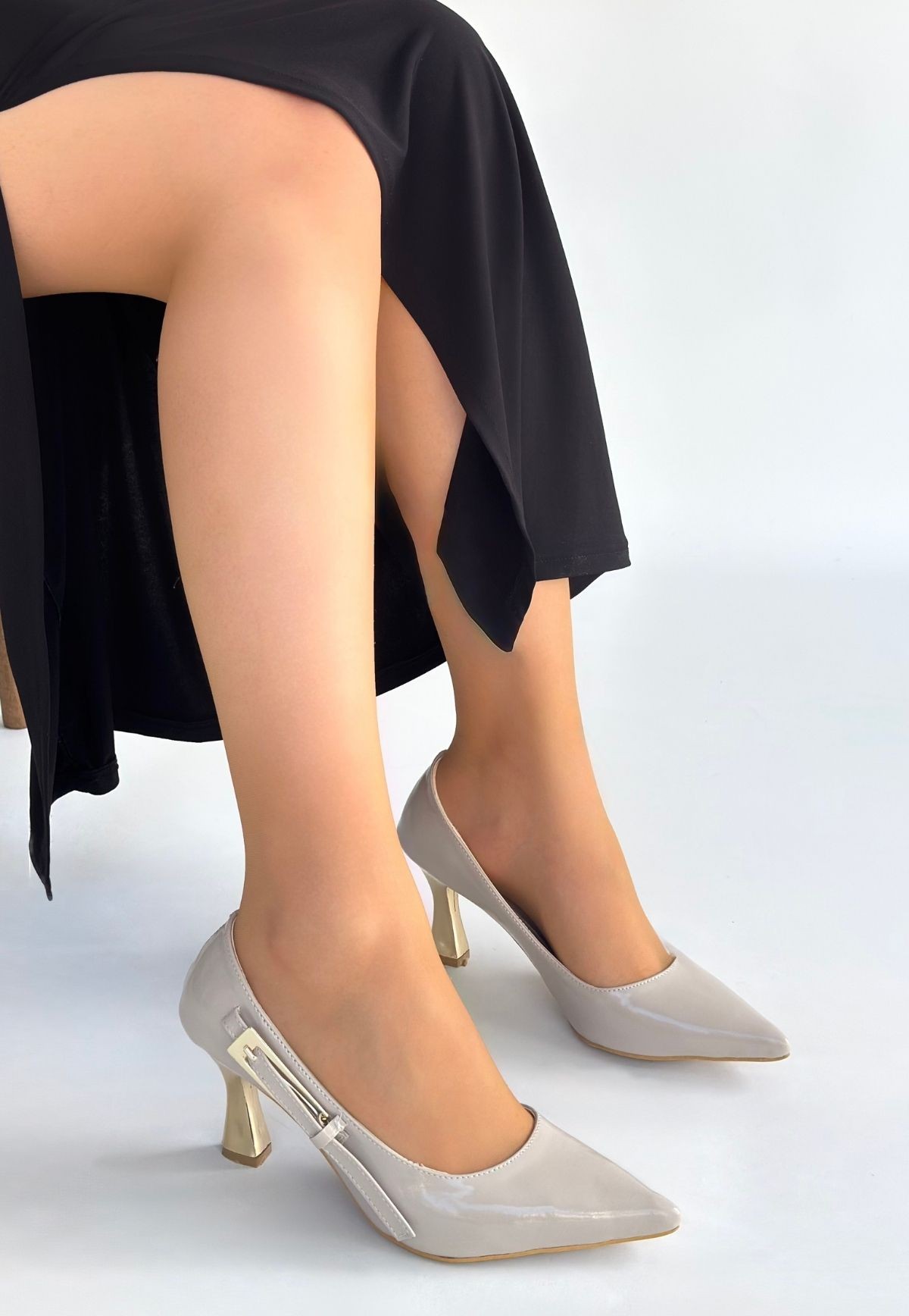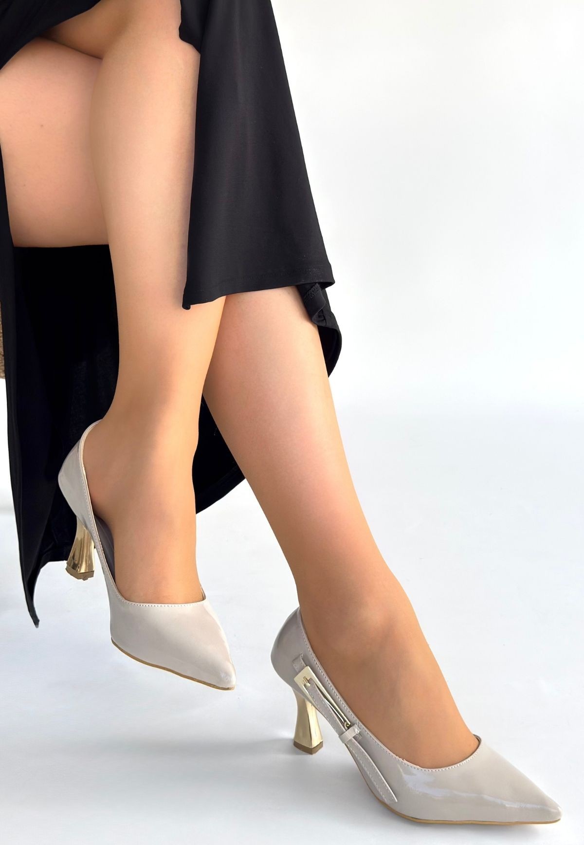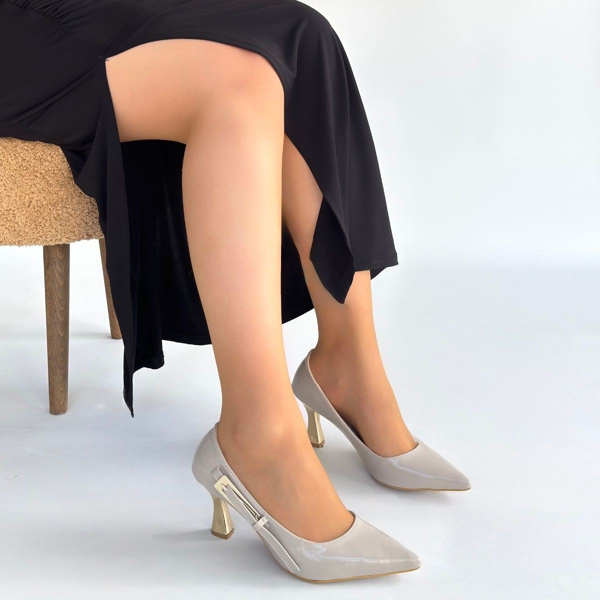 • Motya Bej Rugan Topuklu Ayakkabı