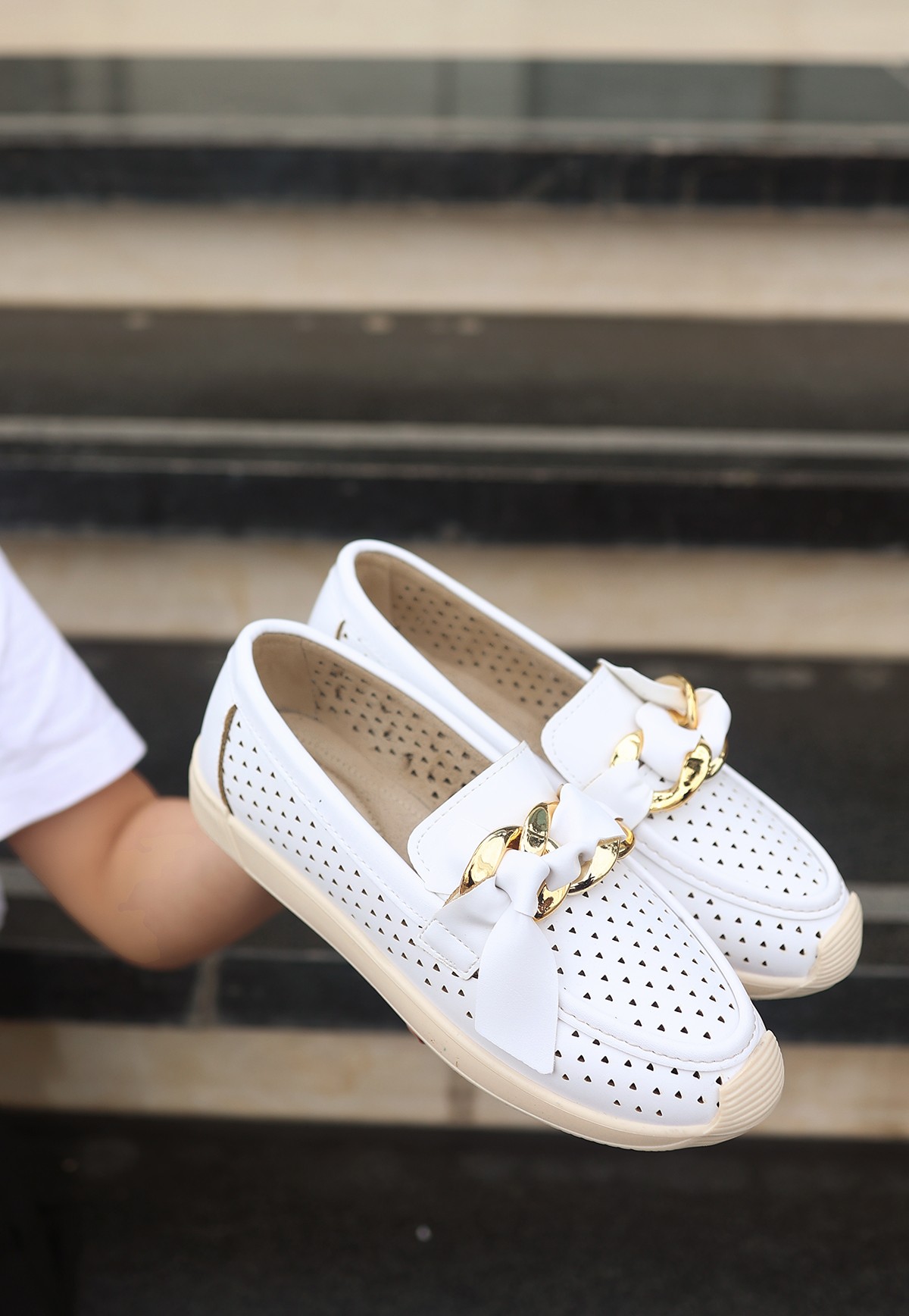 Babet Ayakkabı Riwan Beyaz Cilt Babet Ayakkabı