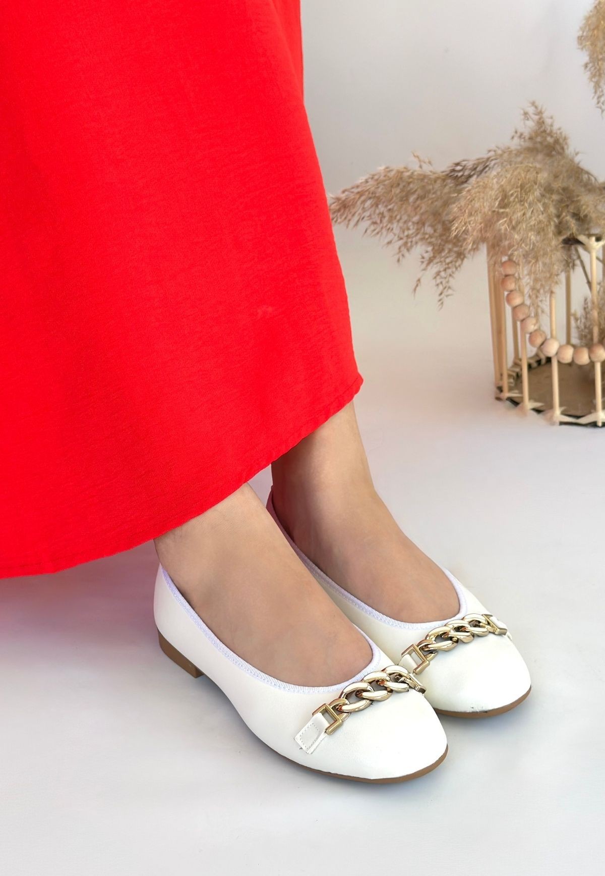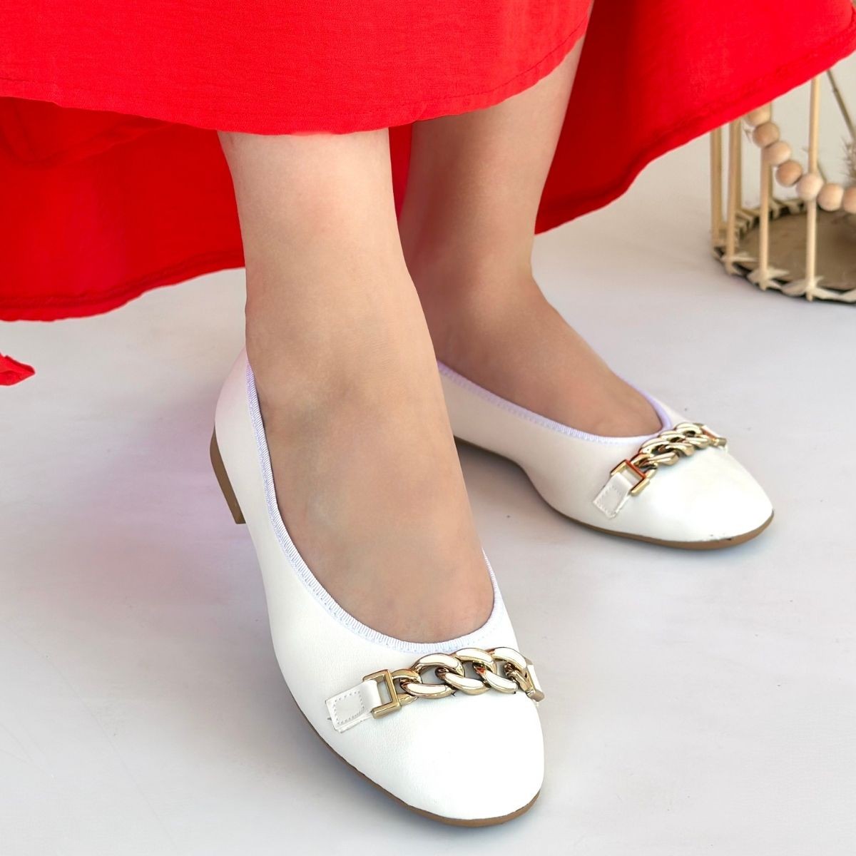 Babet Ayakkabı Cleo Beyaz Cilt Babet Ayakkabı