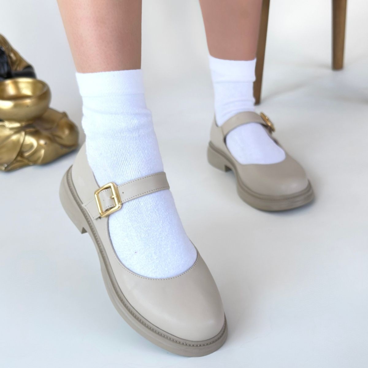 Babet Ayakkabı Yokox Bej Cilt Oxford Ayakkabı