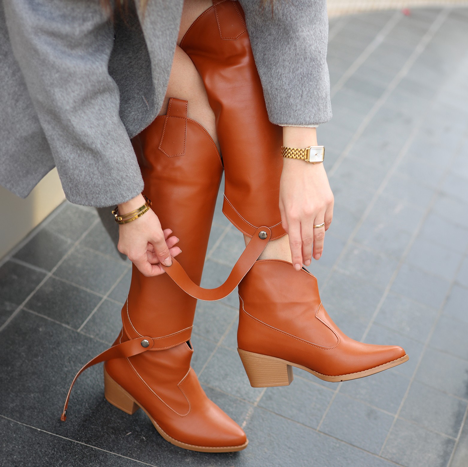 Çizme Milla Taba Cilt Tak Çıkar Topuklu Bot ve Çizme