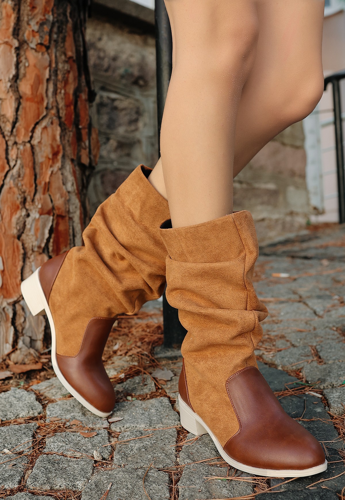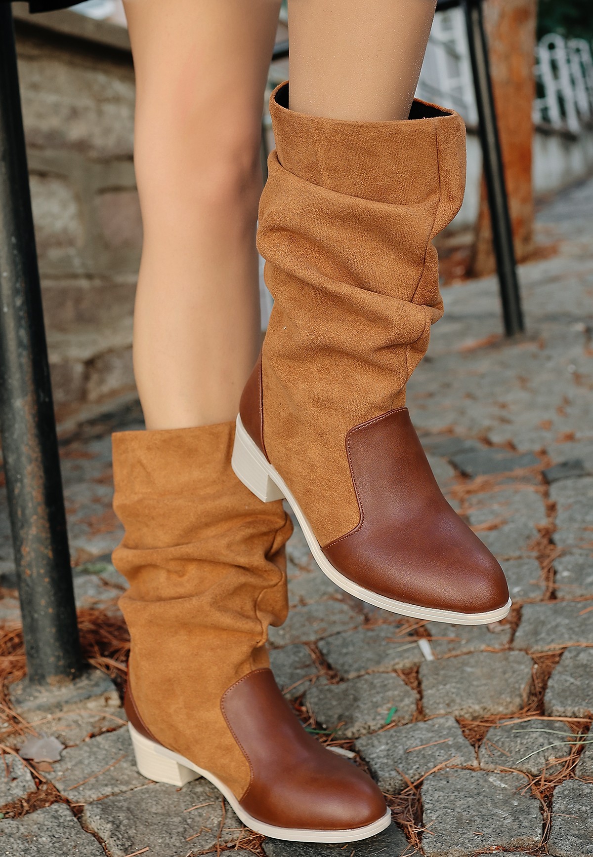 Çizme Jolin Taba Cilt Süet Detaylı Çizme