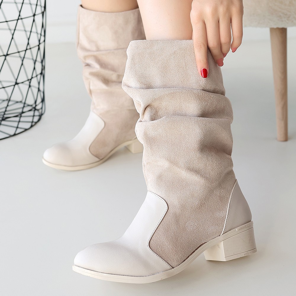 Jolin Bej Cilt Süet Detaylı Çizme
