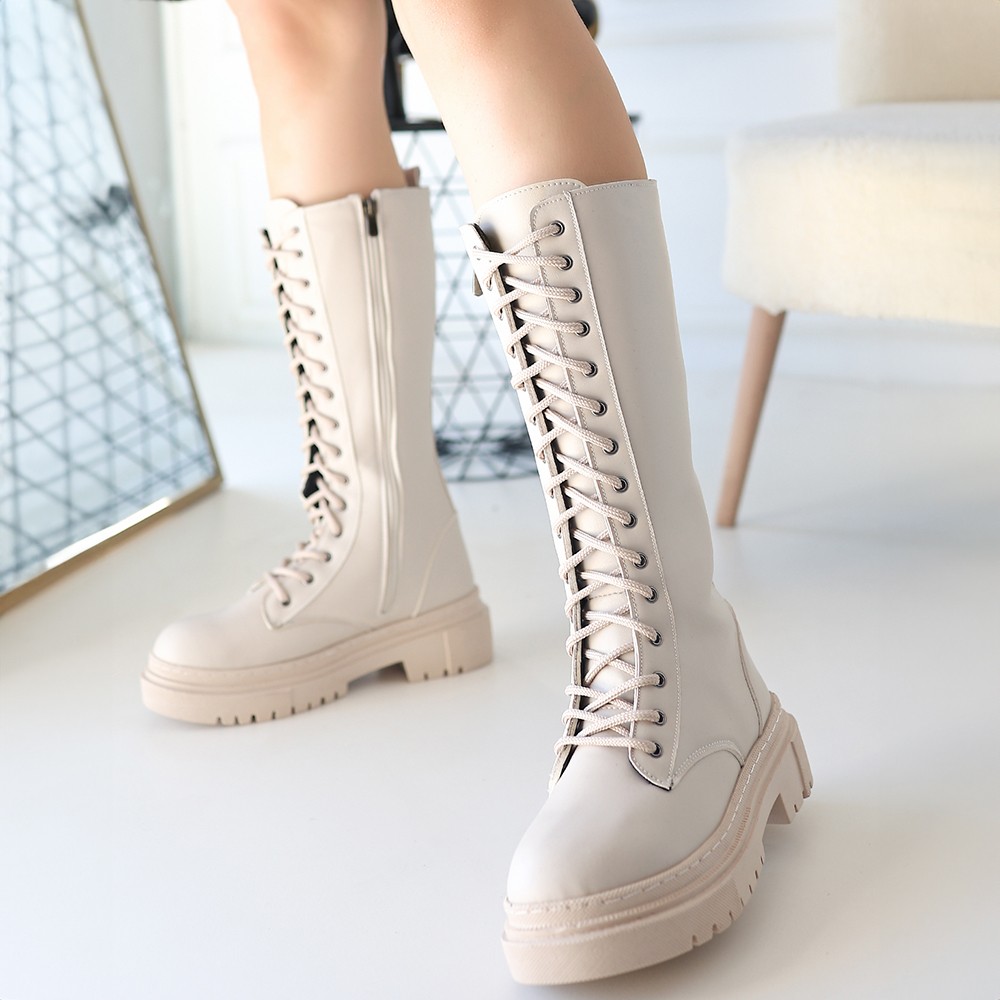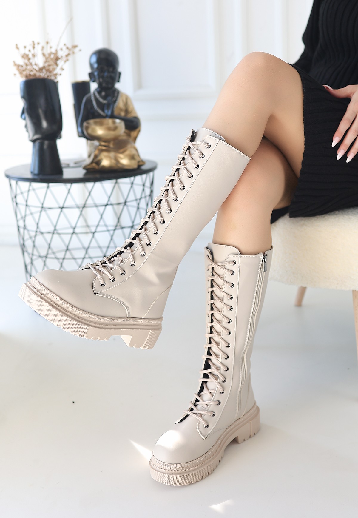 Çizme Mennd Bej Cilt Bağcıklı Çizme