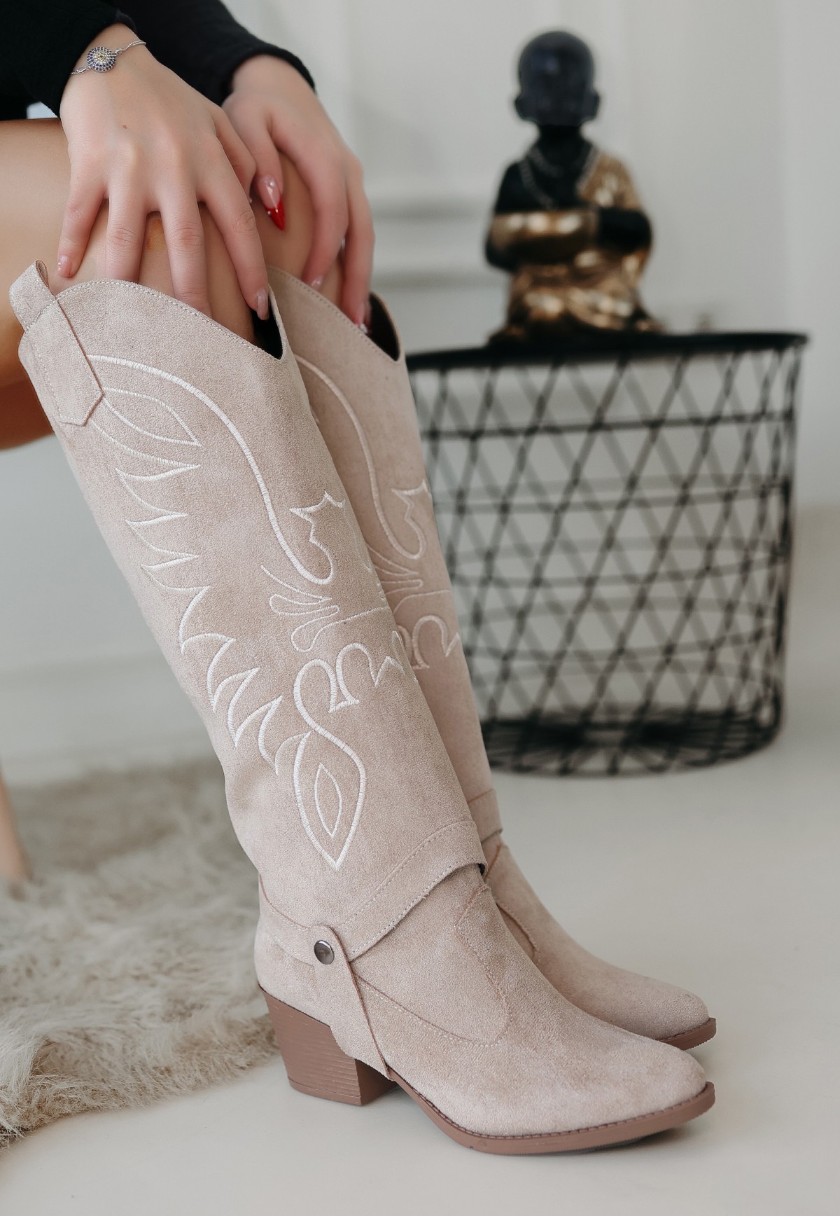Çizme Jilla Bej Süet Tak Çıkar Topuklu Bot ve Çizme