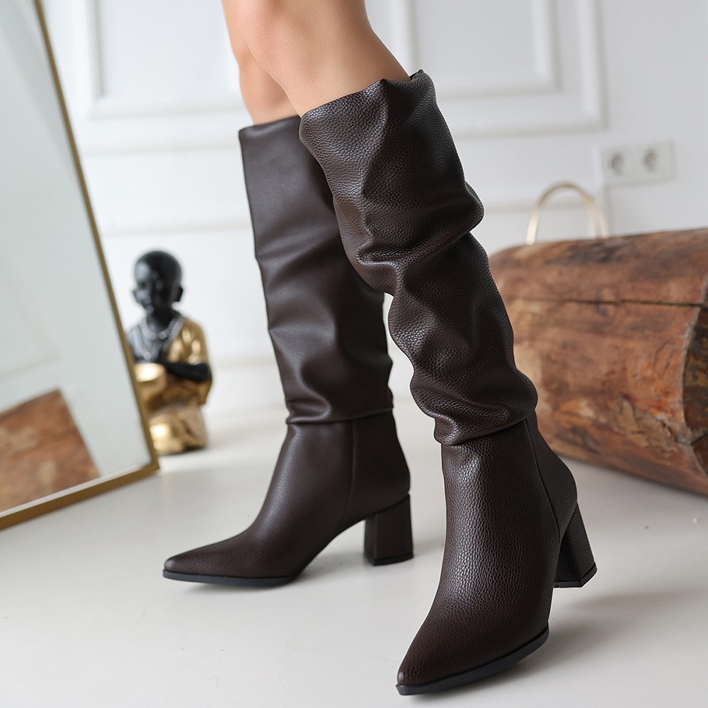 Pitay Kahverengi Cilt Topuklu Çizme