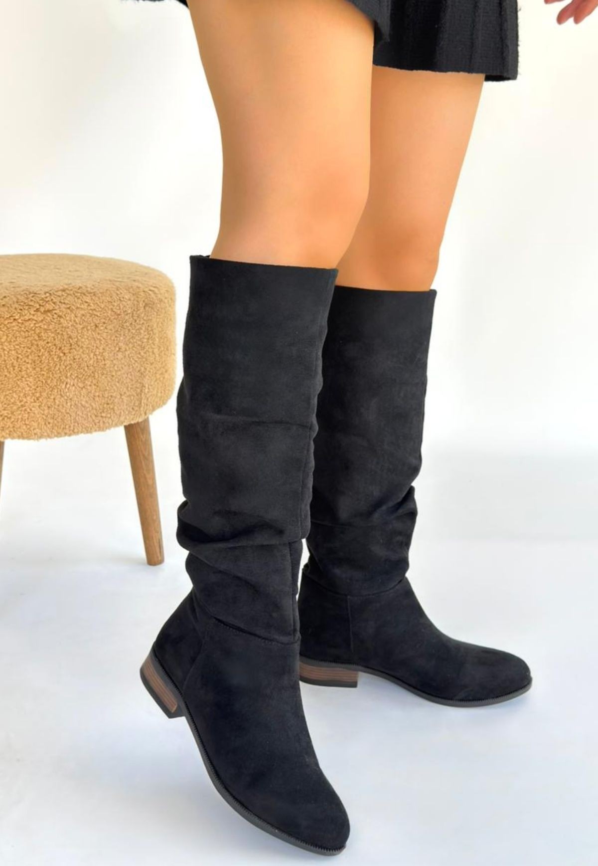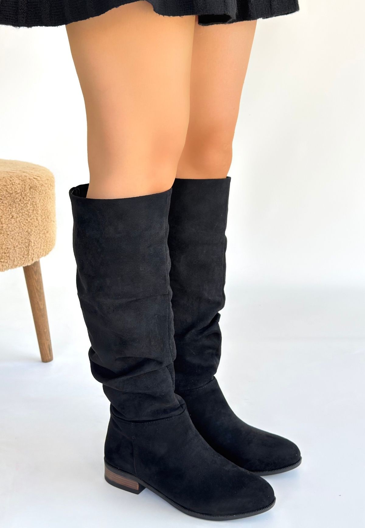 Çizme Winda Siyah Süet Körüklü Çizme