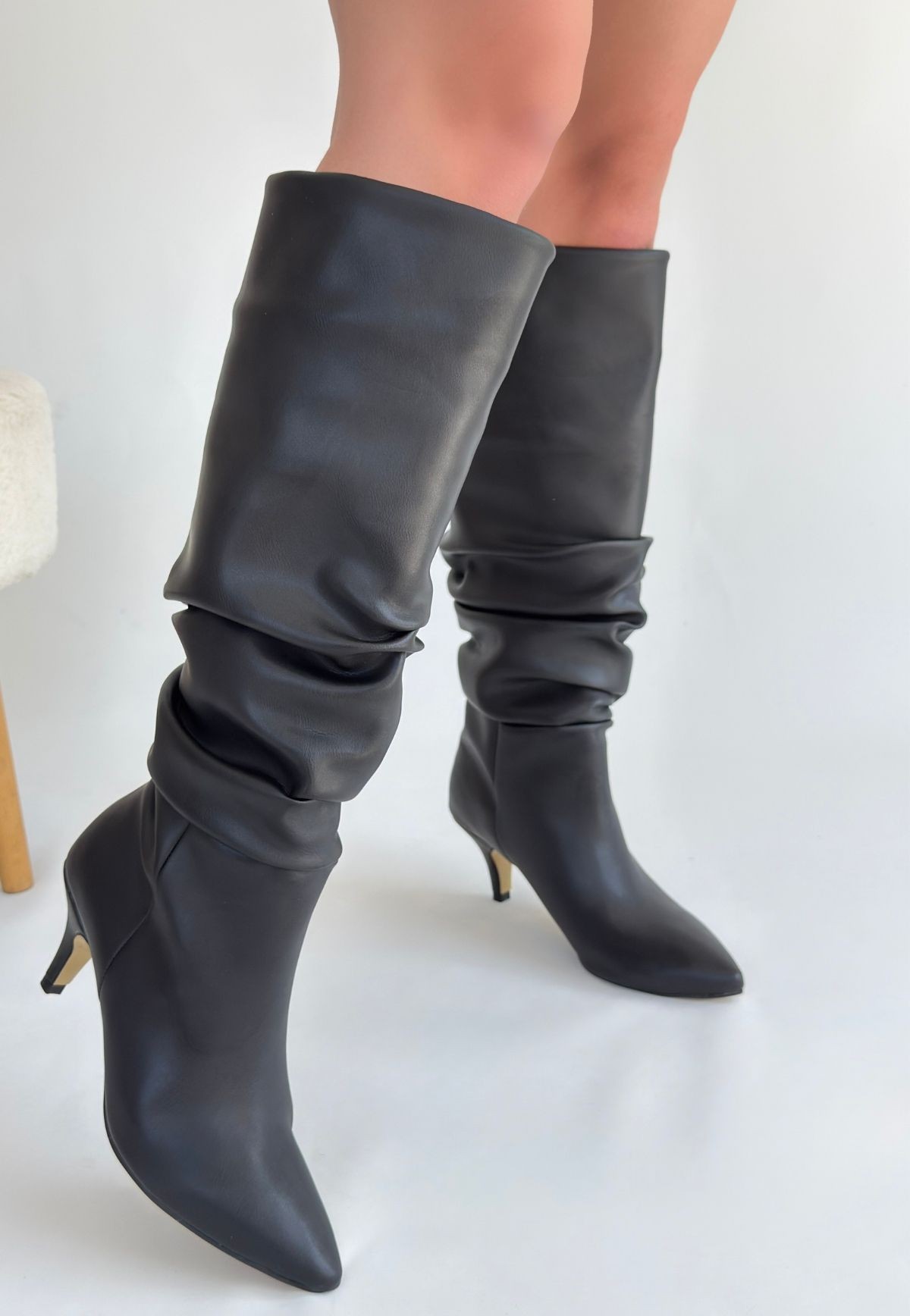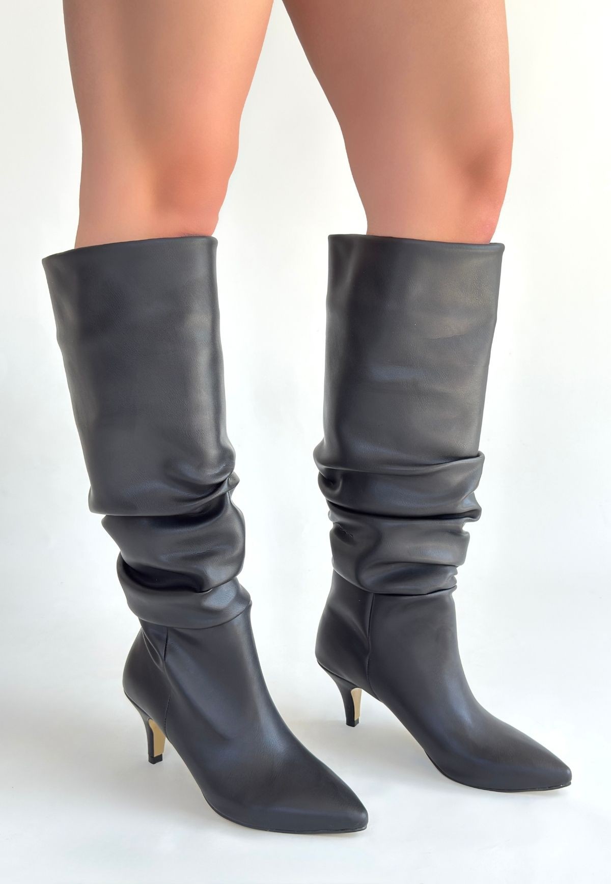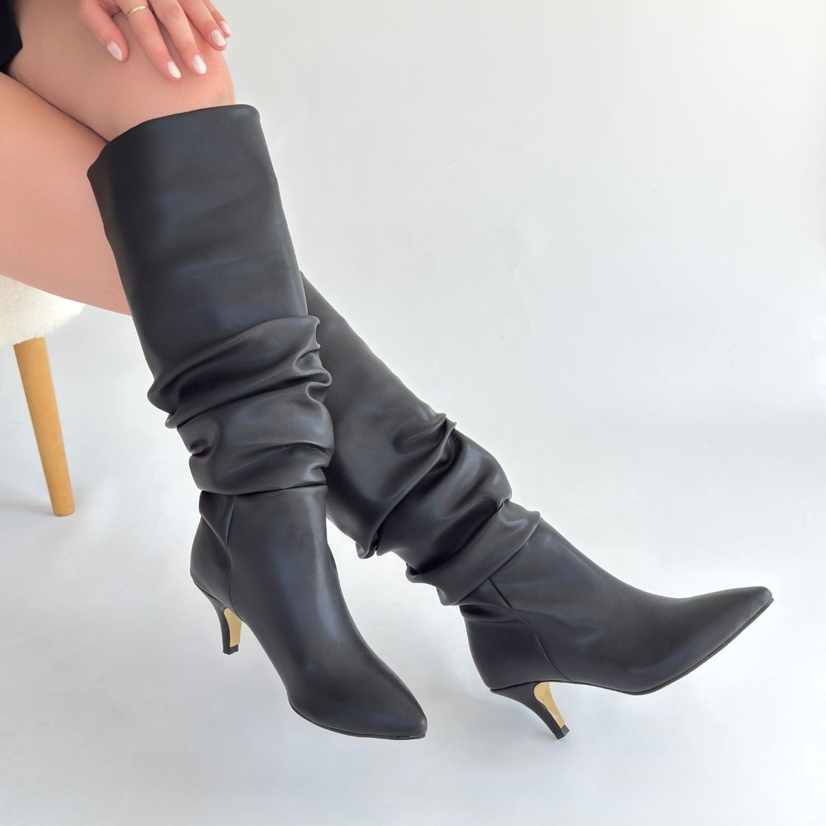 Çizme Zelya Siyah Cilt Topuklu Çizme