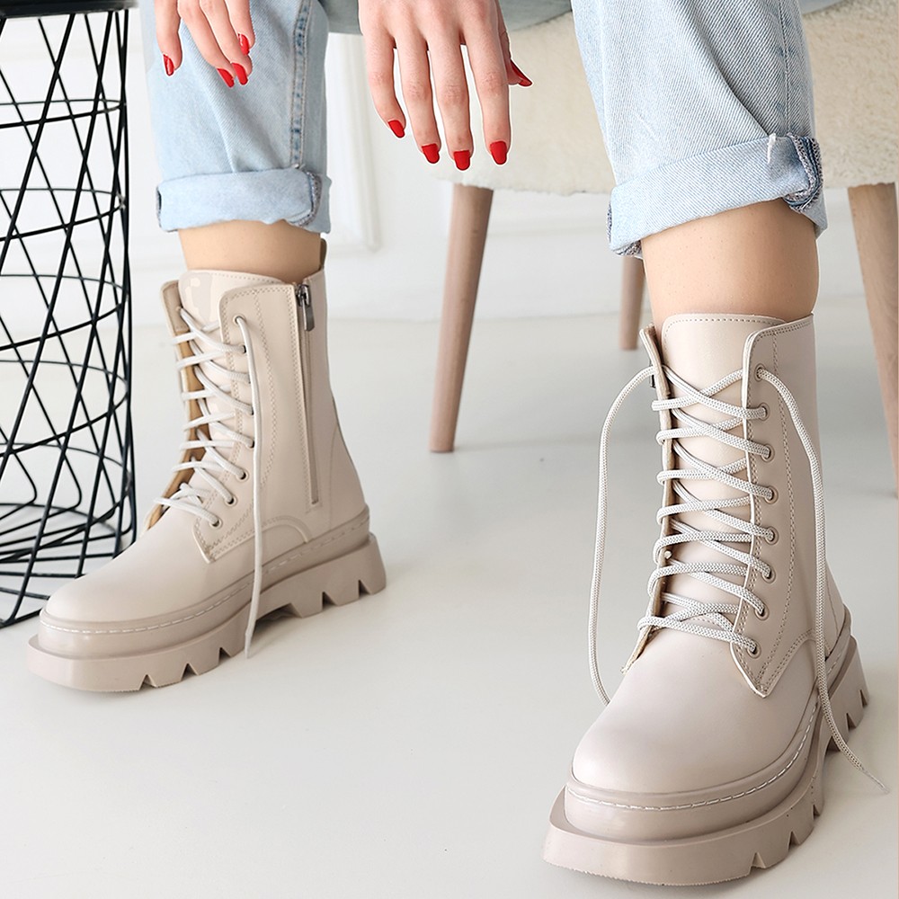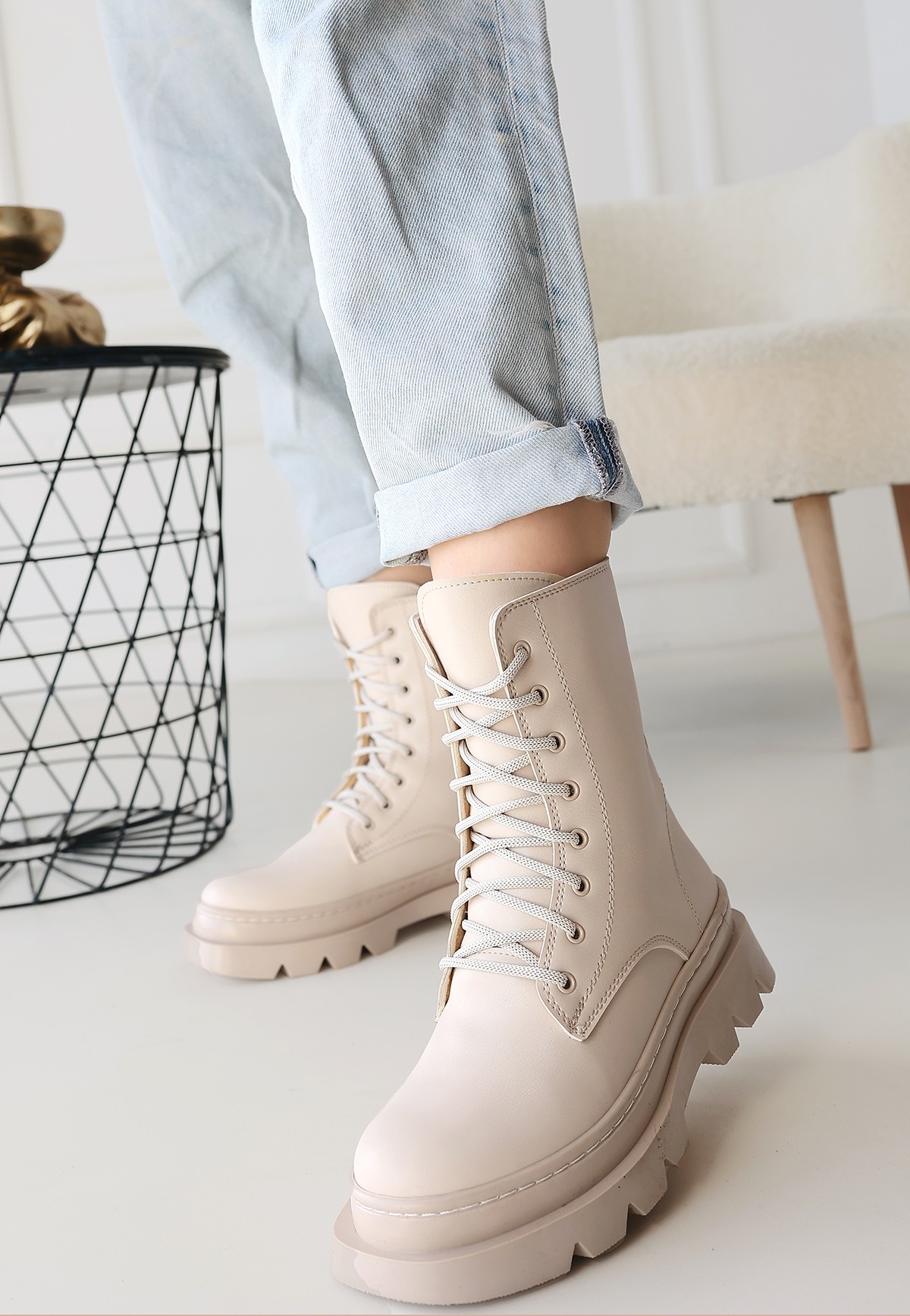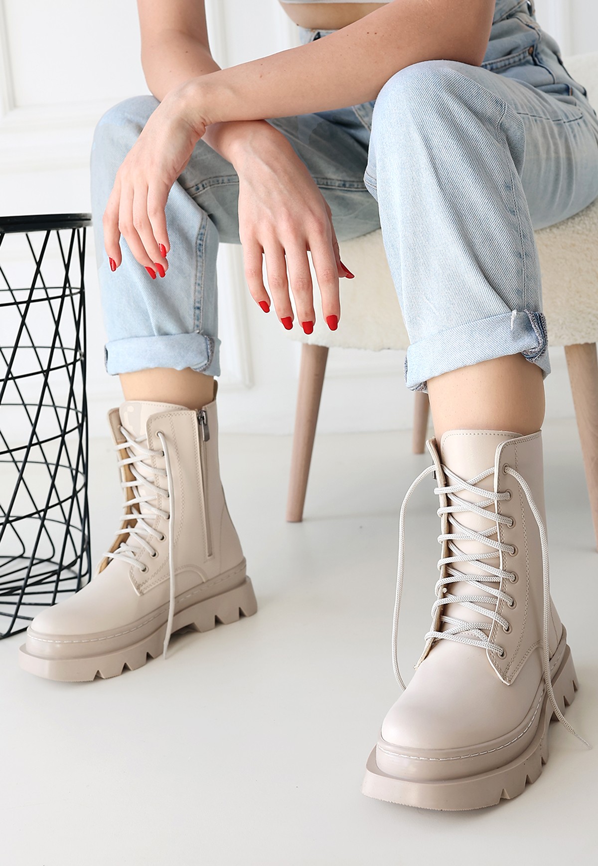 Kadın Bot Orge Bej Cilt Bağcıklı Bot