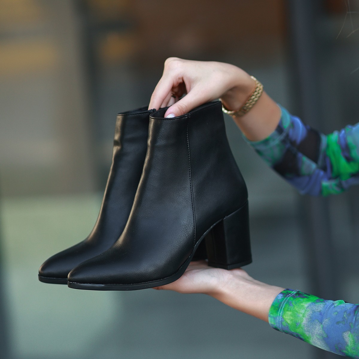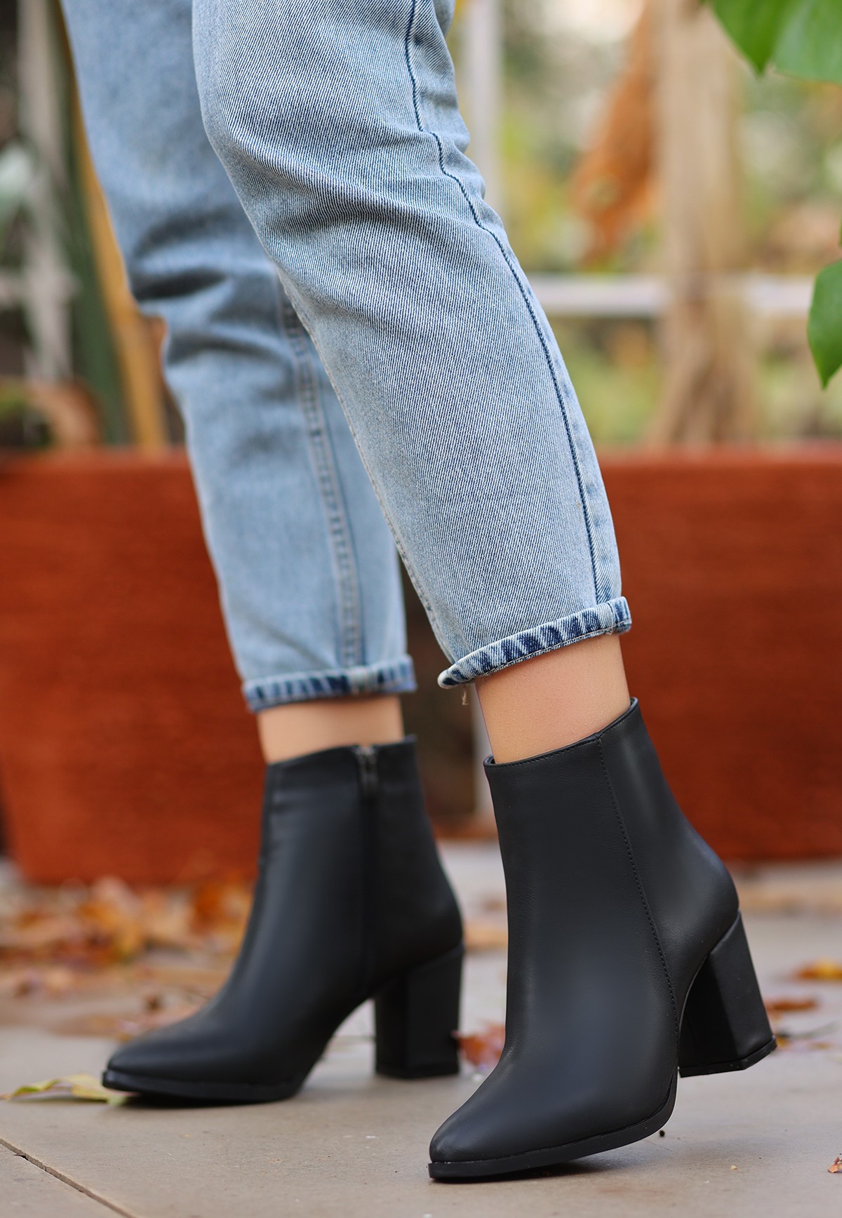 Kadın Bot Biya Siyah Cilt Topuklu Bot