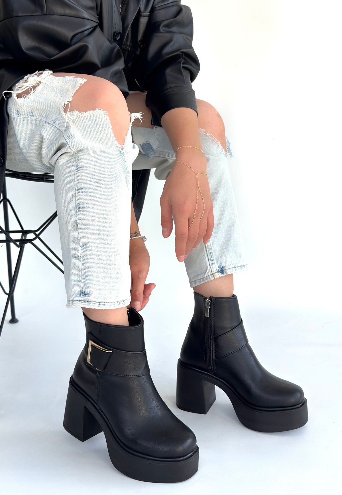 • Lonji Siyah Cilt Topuklu Bot