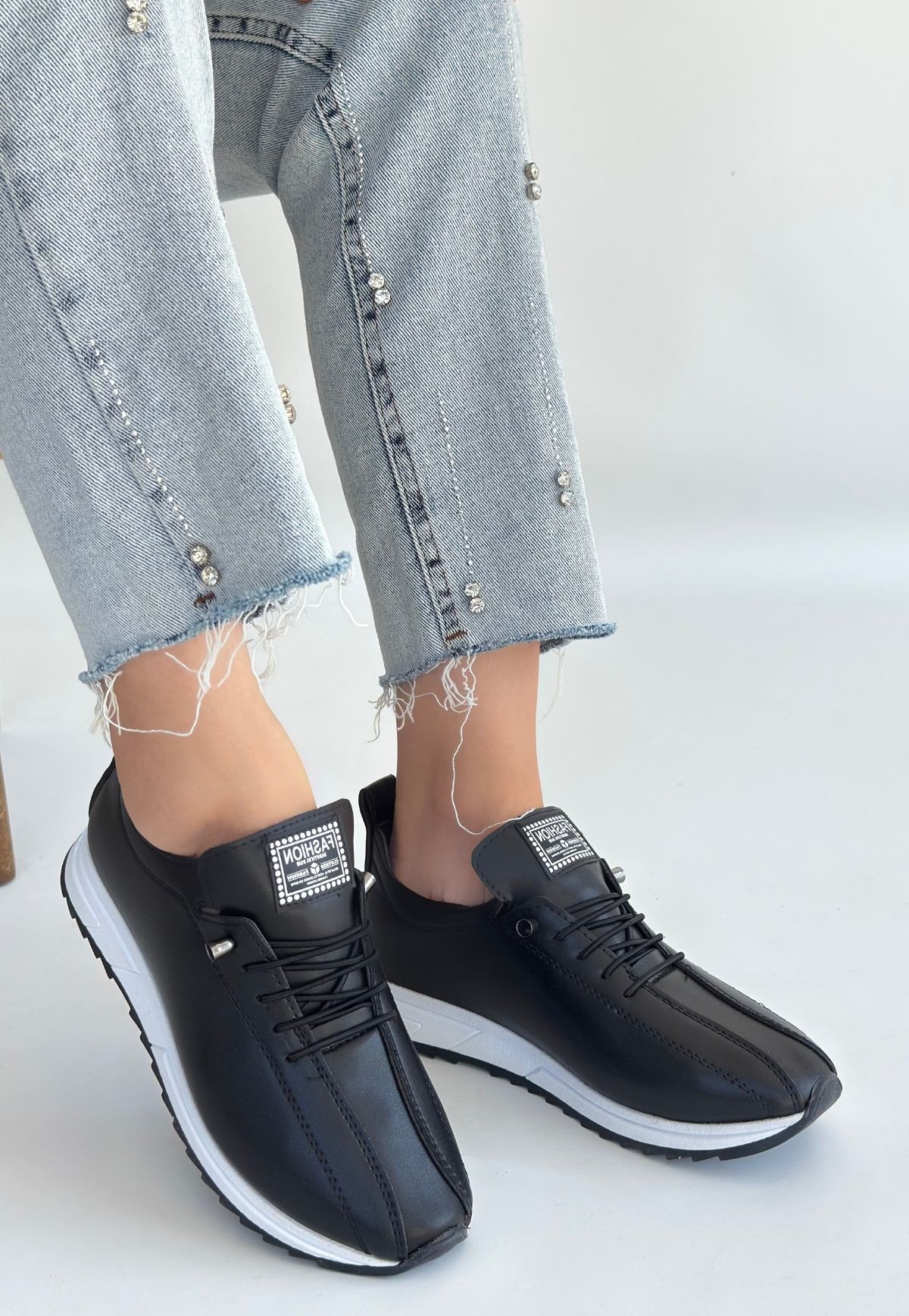 • Monya Siyah Cilt Bağcıklı Spor Ayakkabı