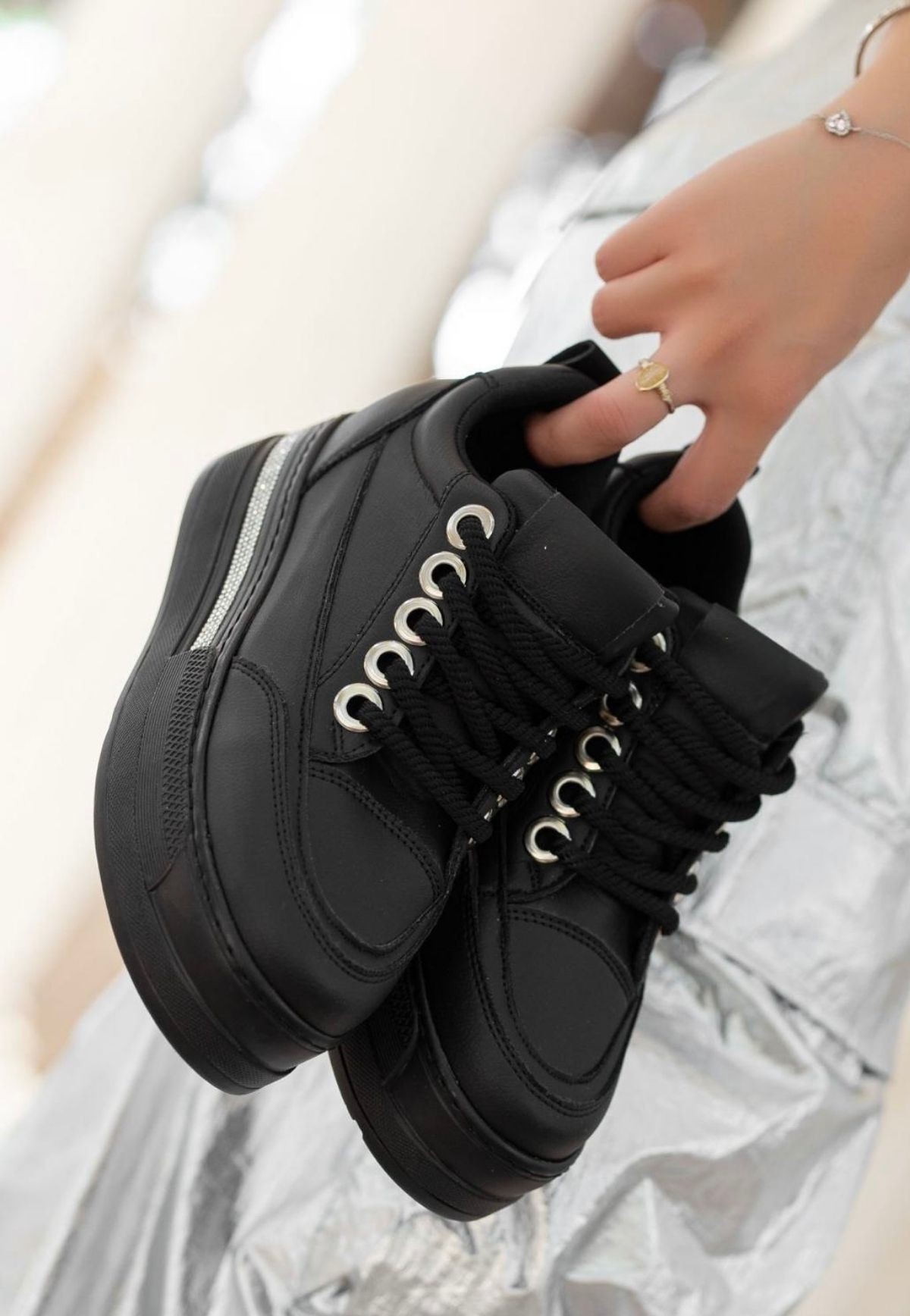 • Lulu Siyah Cilt Bağcıklı Spor Ayakkabı