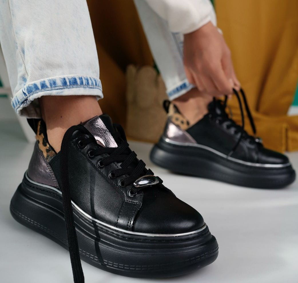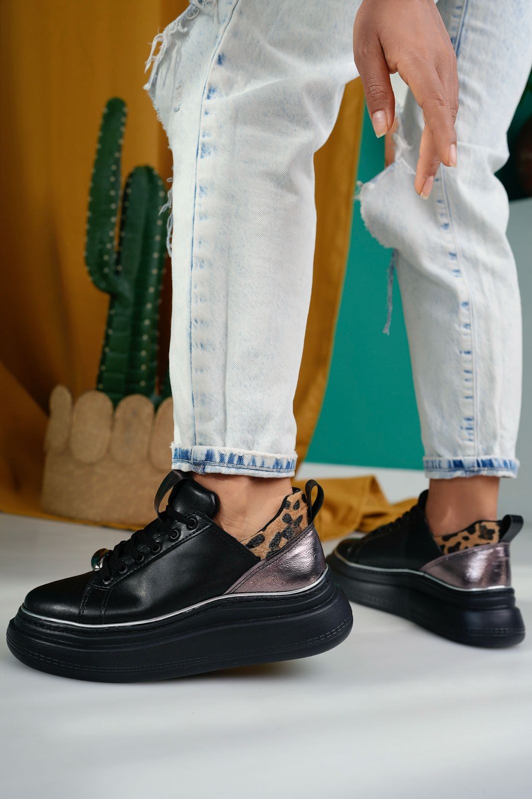 Jista Siyah Cilt Bağcıklı Spor Ayakkabı