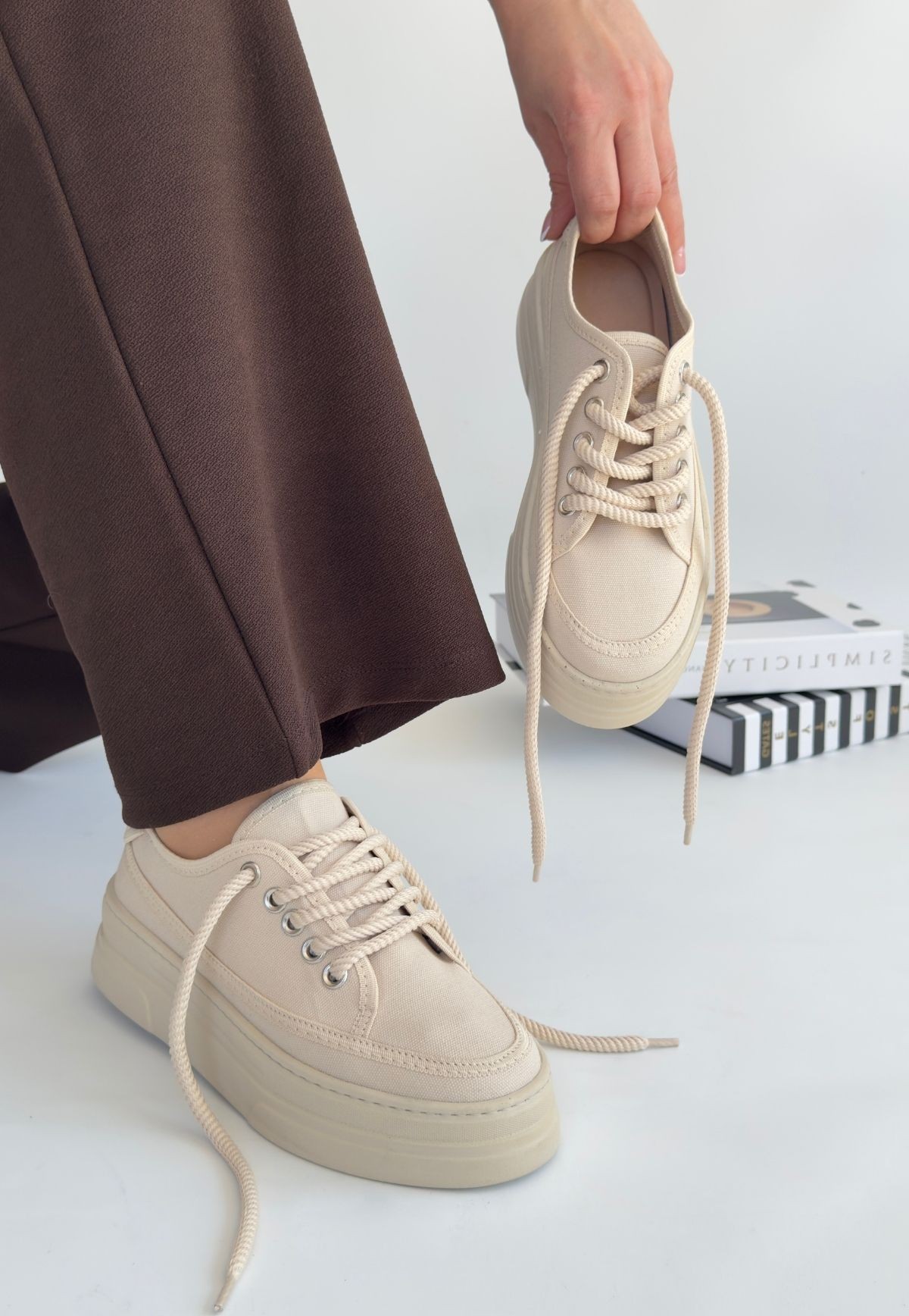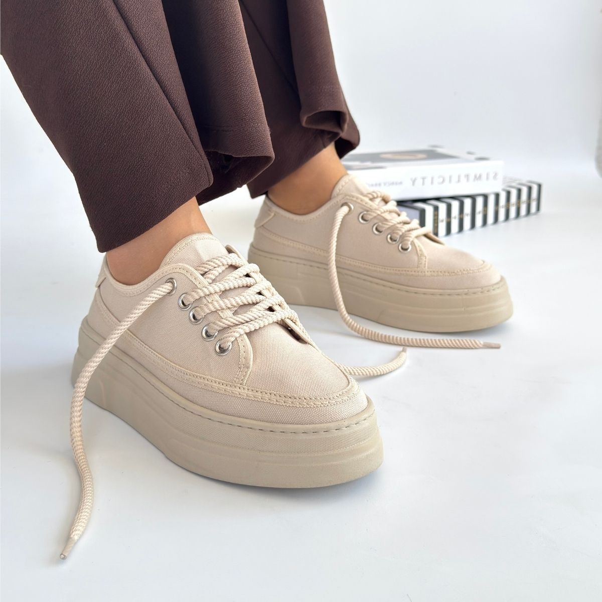 • Carin Bej Keten Bağcıklı Spor Ayakkabı