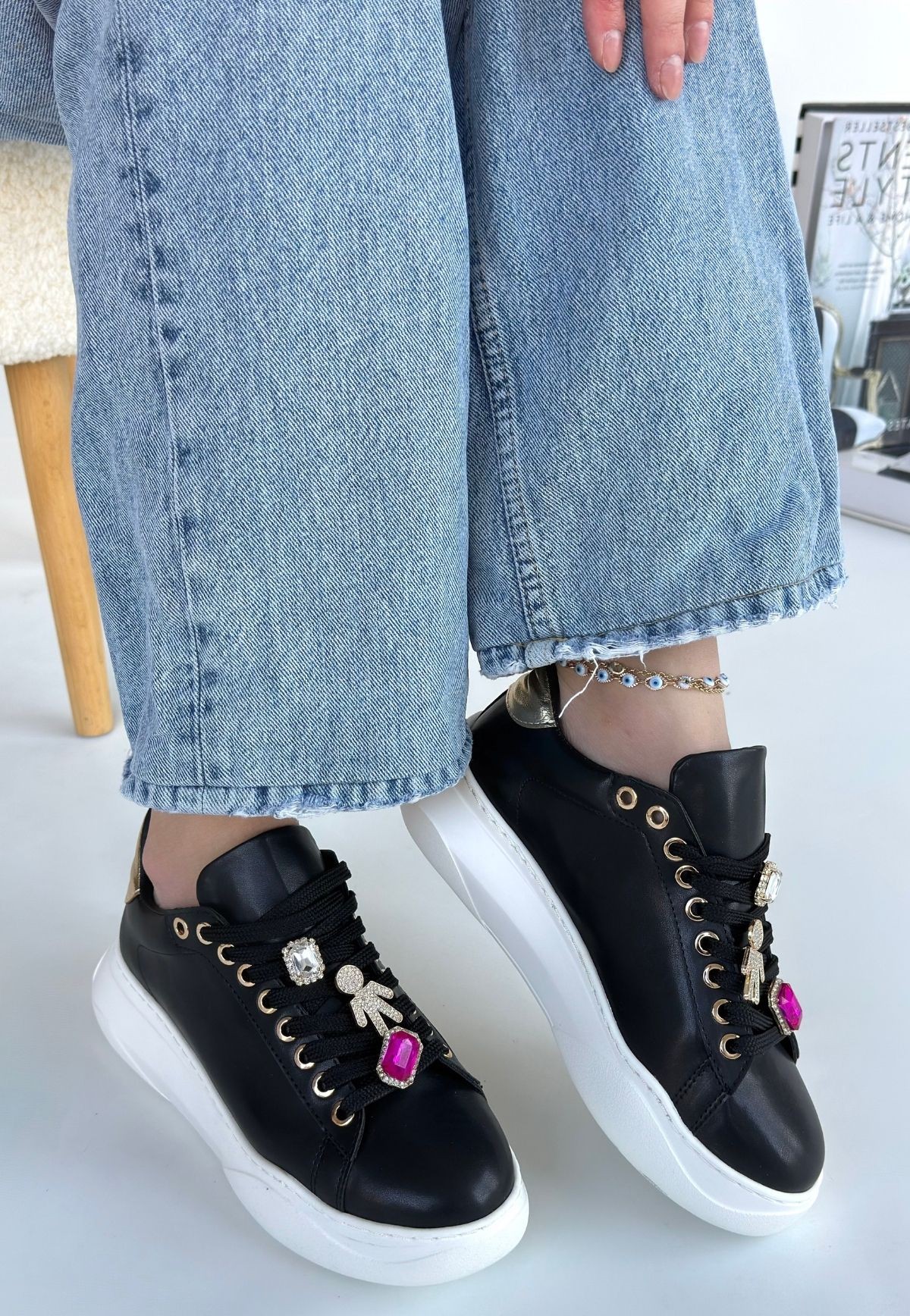 Kadın Spor Gane Siyah Cilt Bağcıklı Spor Ayakkabı