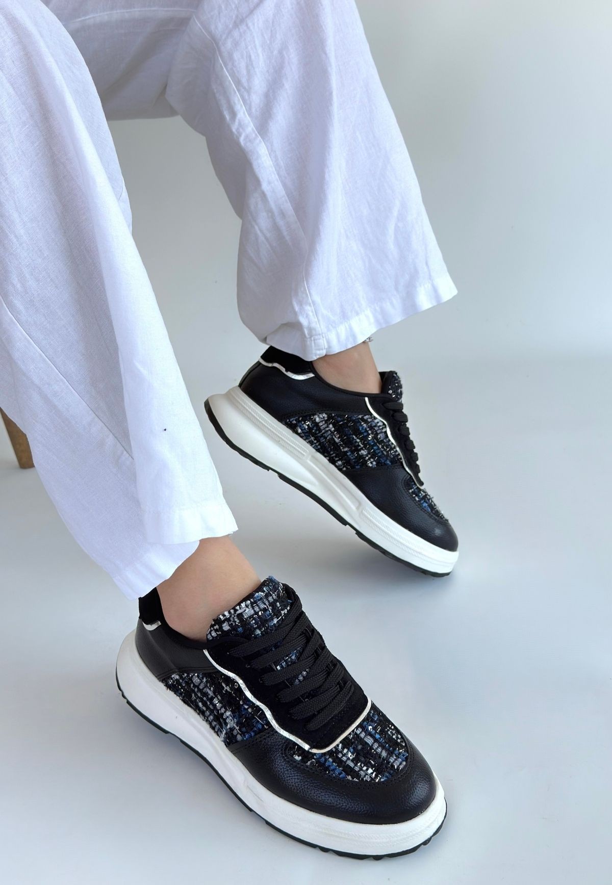 Kadın Spor Hawer Siyah Cilt Bağcıklı Spor Ayakkabı