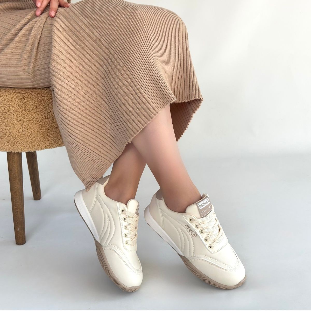 Kadın Spor Tawen Bej Cilt Bağcıklı Spor Ayakkabı