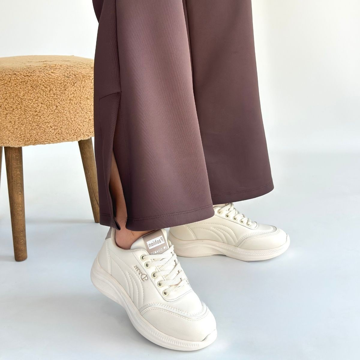 • Yejja Bej Cilt Bağcıklı Spor Ayakkabı