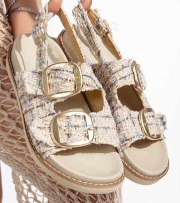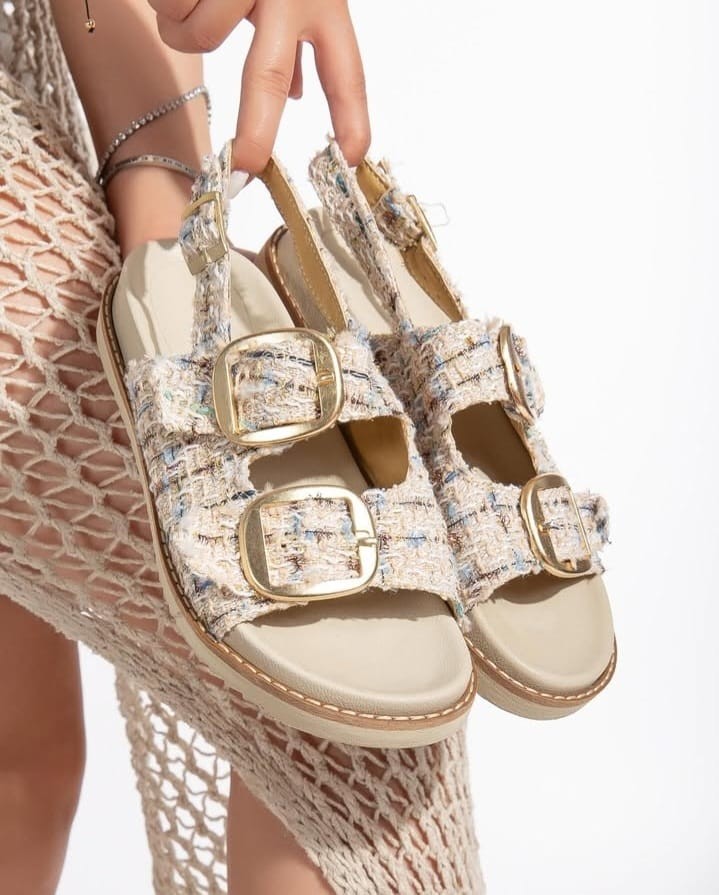 Sandalet Olira Bej Simli Kemerli Sandalet