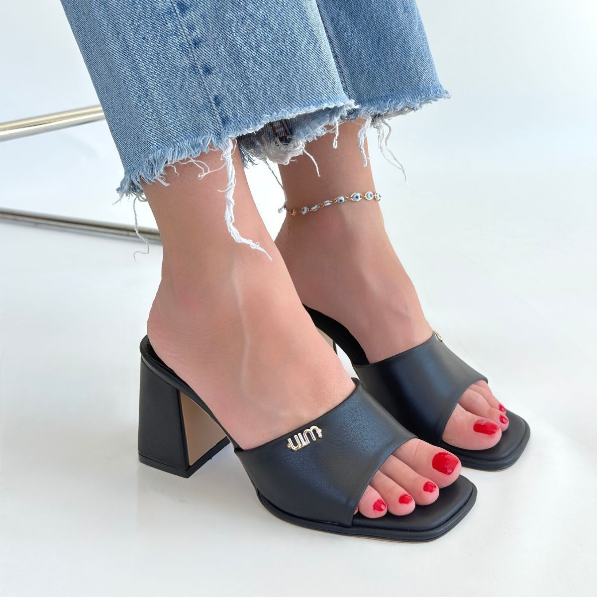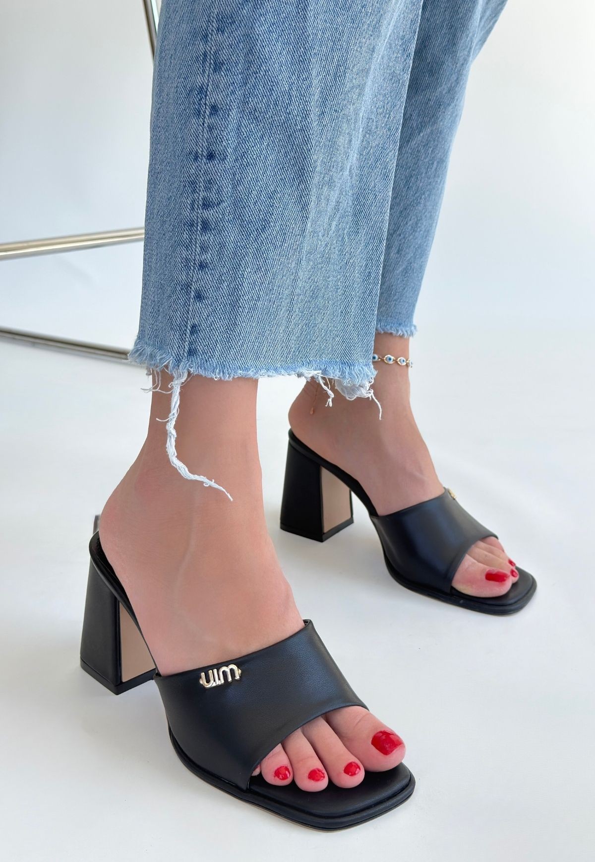 Terlik Miyon Siyah Cilt Topuklu Terlik