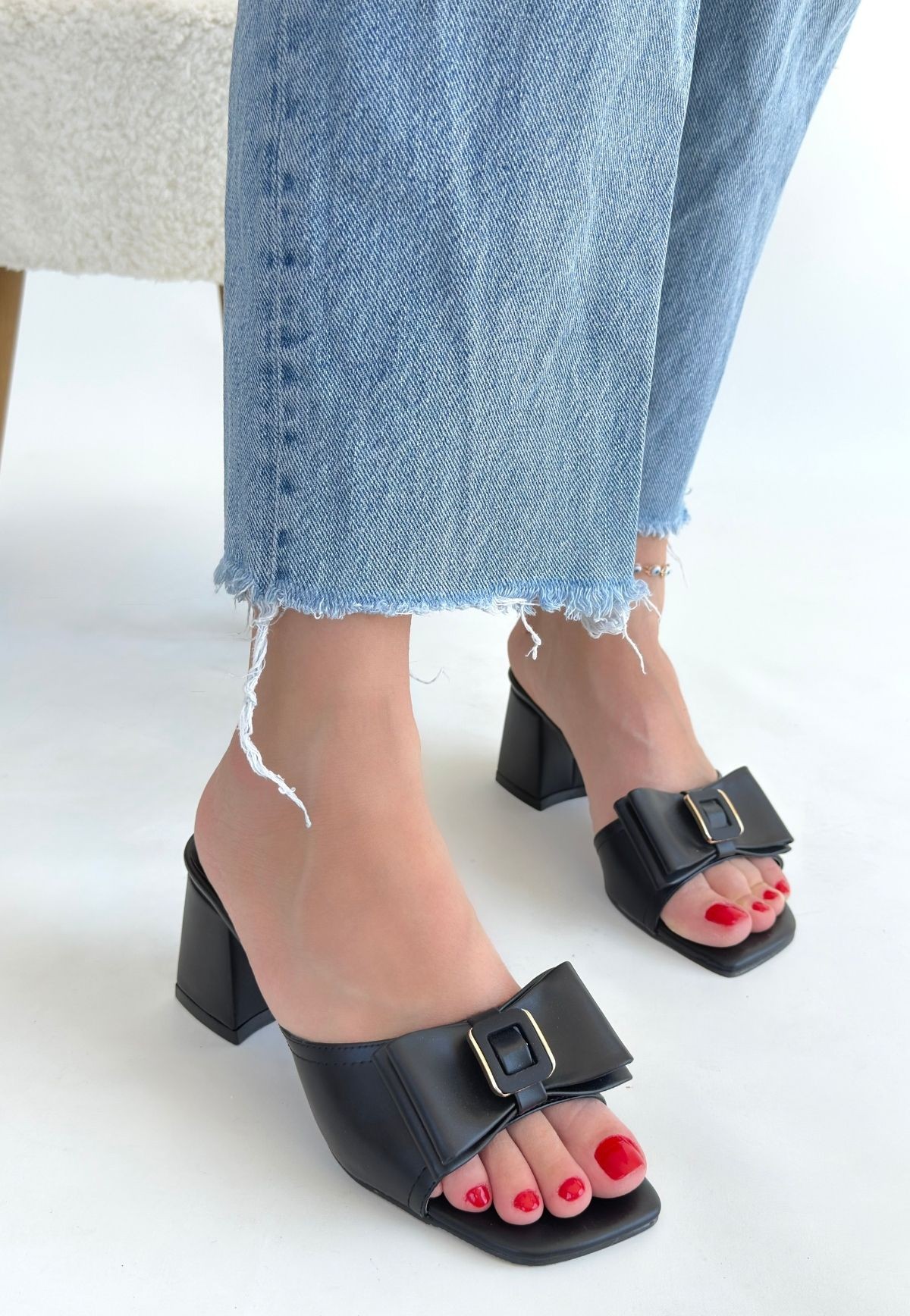 Terlik Veor Siyah Cilt Topuklu Terlik