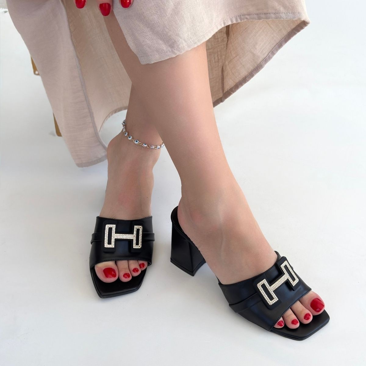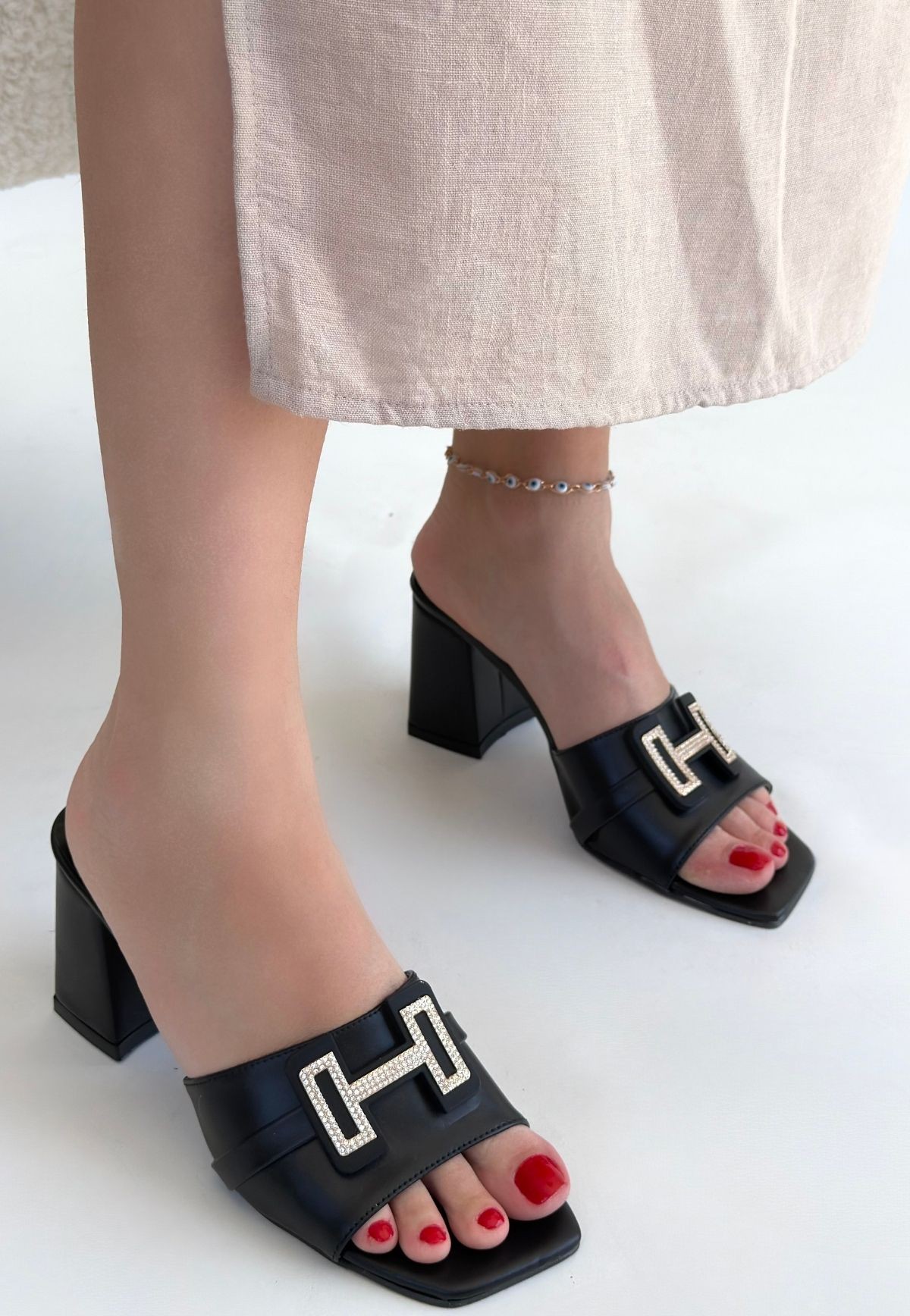 Terlik Erew Siyah Cilt Topuklu Terlik