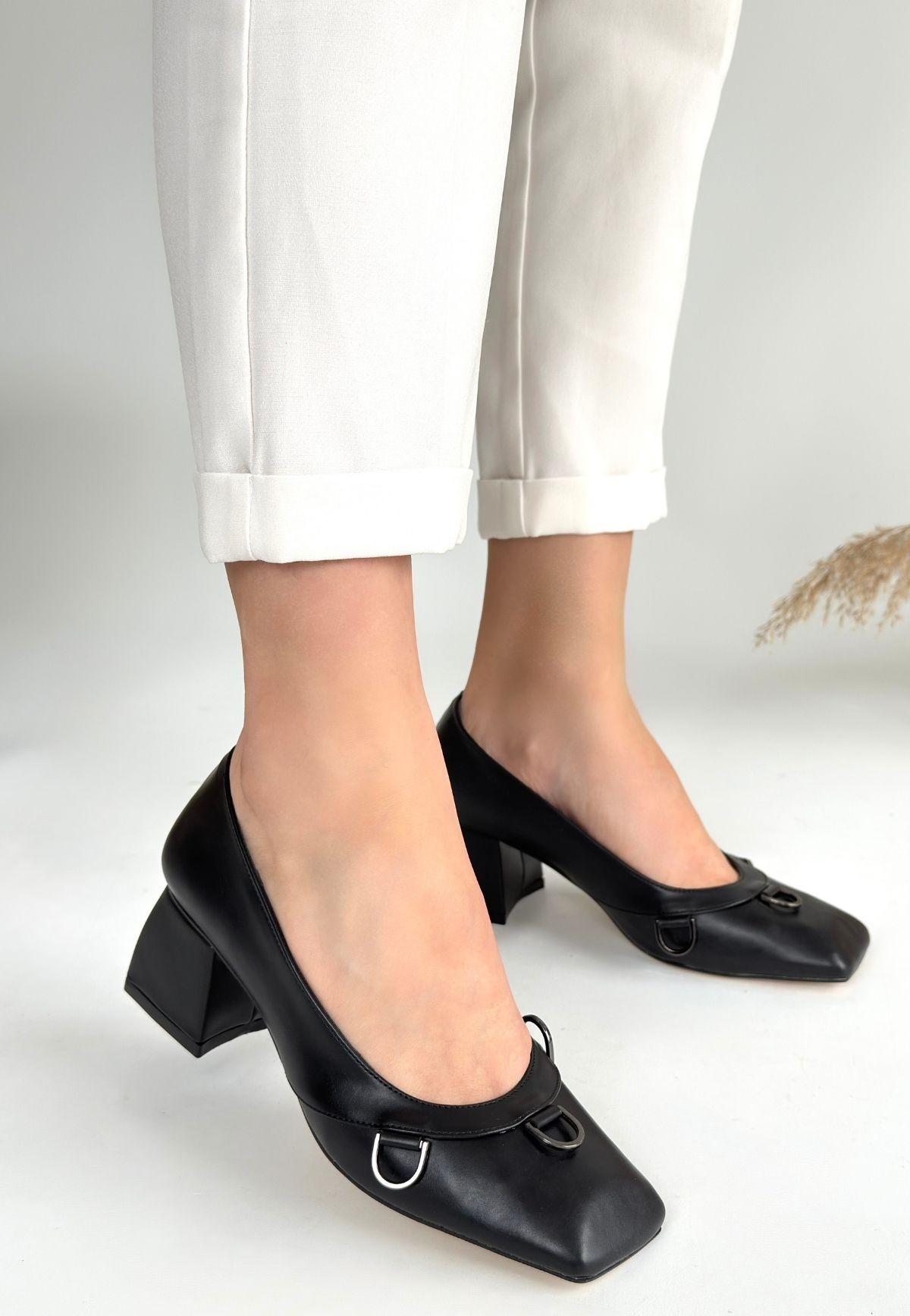 Topuklu Ayakkabı Cande Siyah Cilt Topuklu Ayakkabı