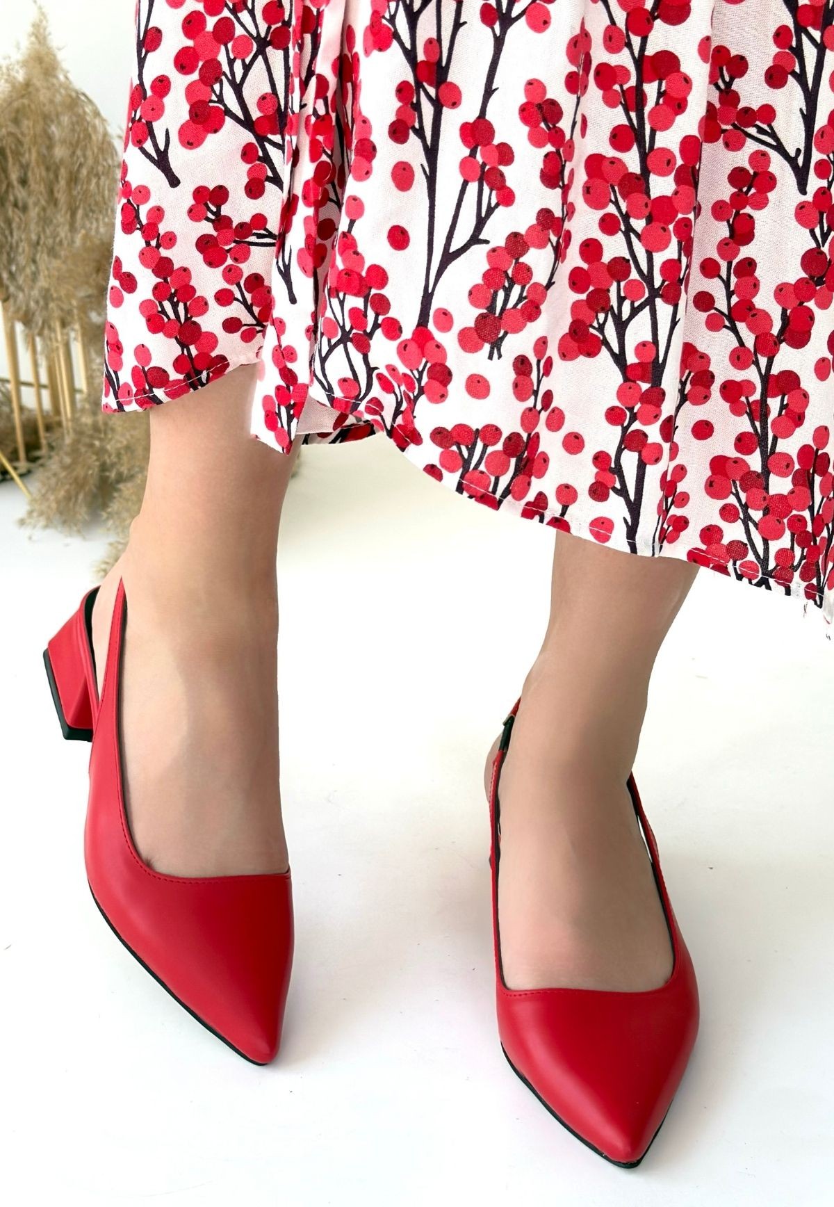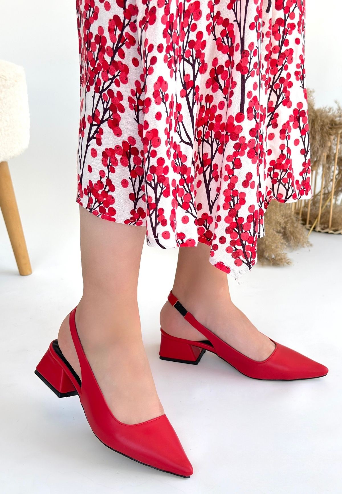 Topuklu Ayakkabı Morji Kırmızı Cilt Topuklu Ayakkabı